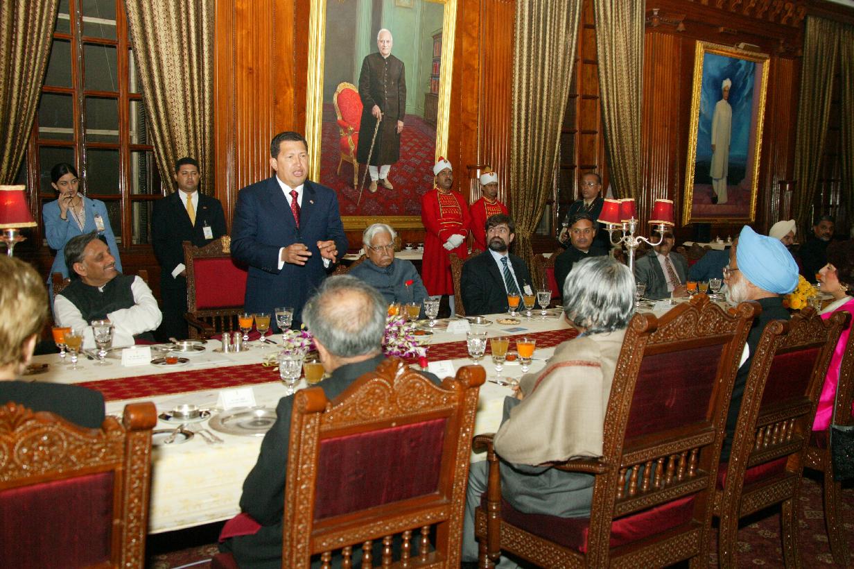 | Caption: | The President of India, Dr A P J Abdul Kalam at the Banquet Hosted in Honour of the President of Bolivarian Republic of Venezuela, HE Mr Hugo Chavez at the Banquet Hall of Rashtrapati Bhavan in New Delhi on March 04, 2005 |