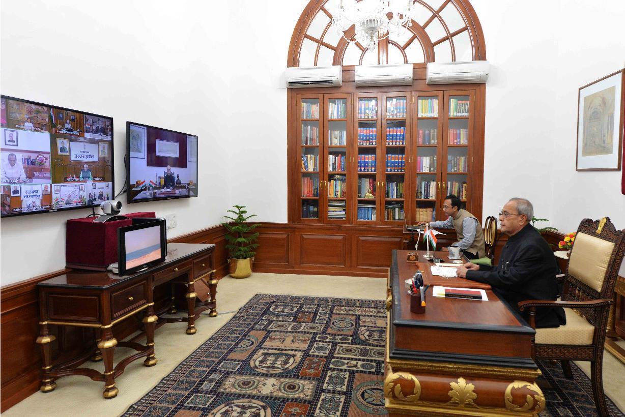| Caption: | The President of India, Shri Pranab Mukherjee delivering a New Year Message to the Governors and Lt. Governors through Video Conferencing using National Knowledge Network (NKN), at Rashtrapati Bhavan on January 08, 2016. |