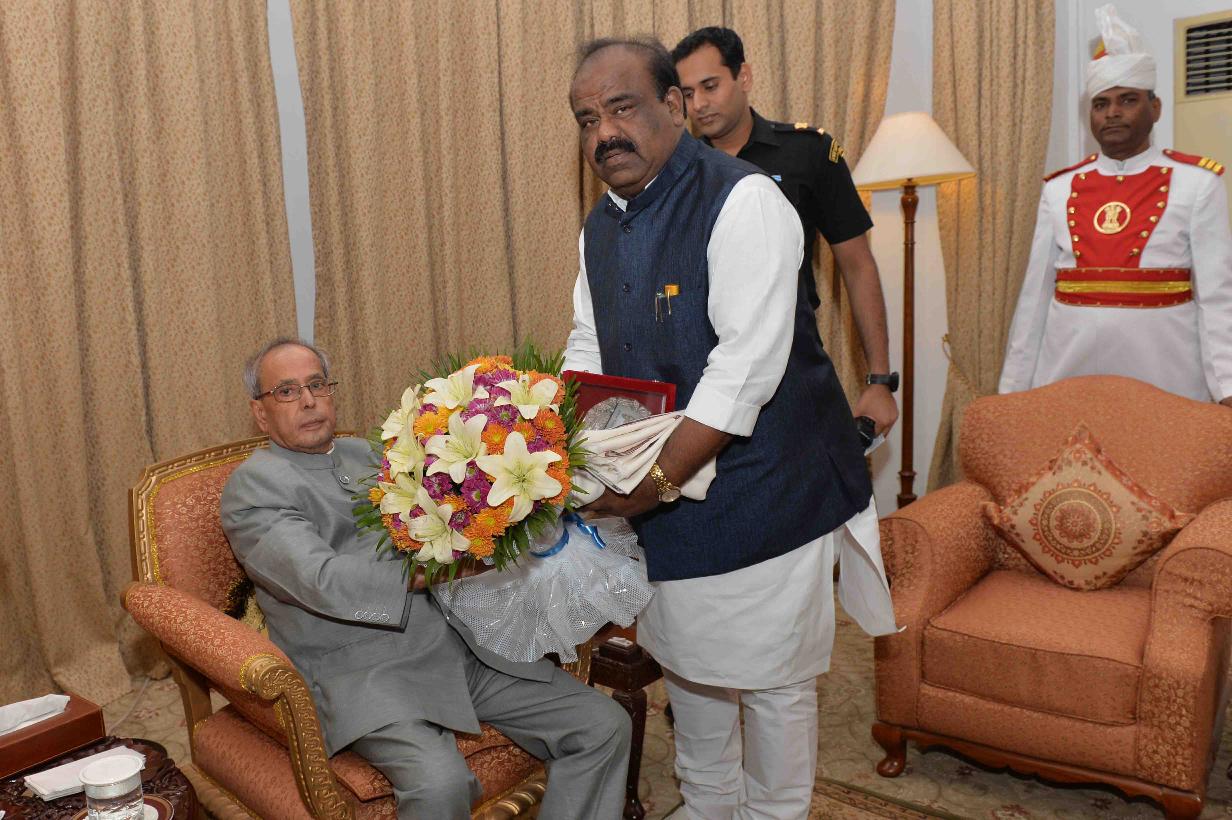 | Caption: | The President of India, Shri Pranab Mukherjee meeting with Shri S. Madhsudhana Chary, Speaker of Telangana Legislative Assembly with others, at Rashtrapati Nilayam, Bolarum, in Secunderabad on December 28, 2015. |