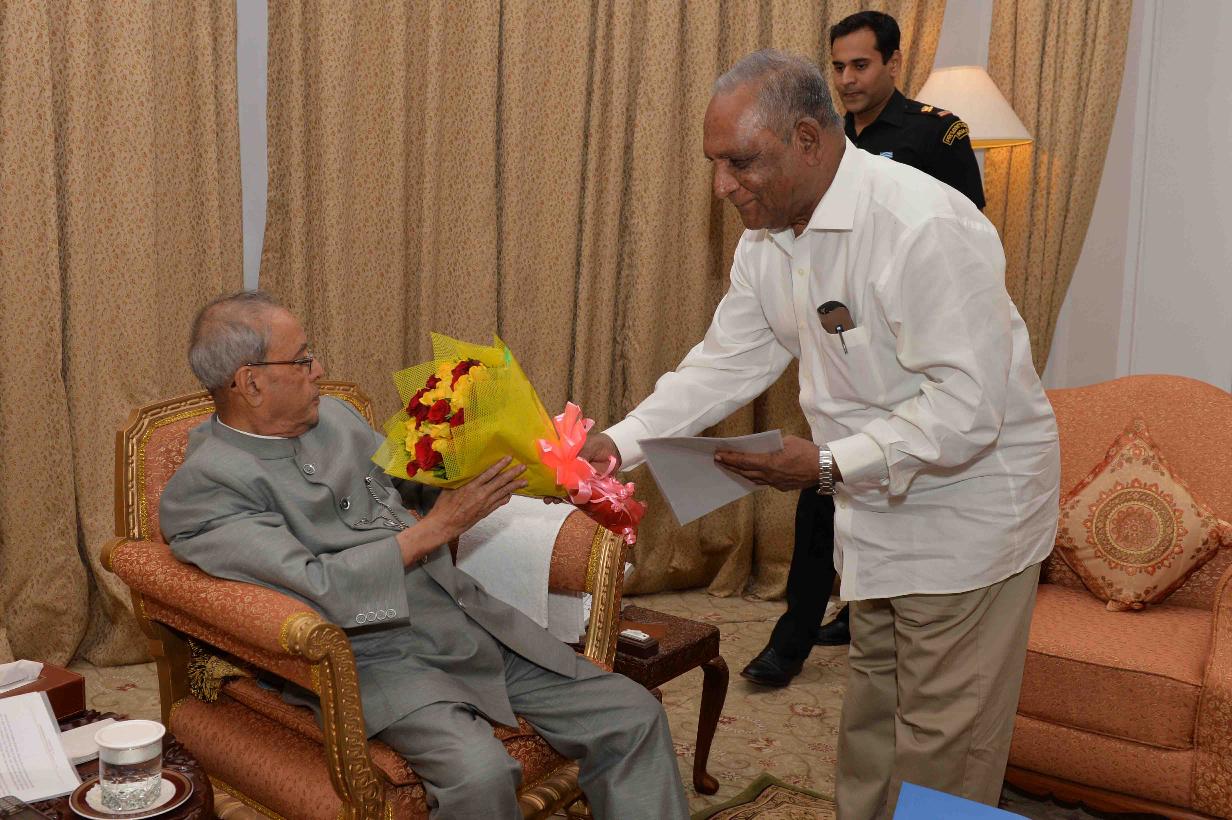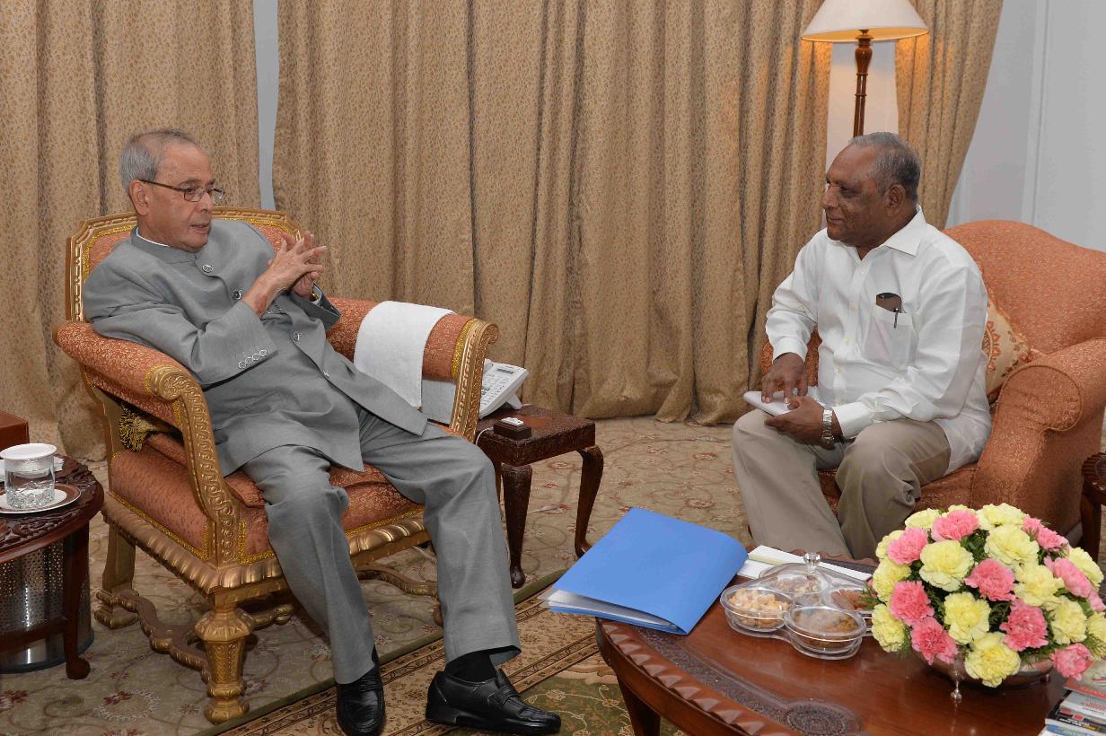 | Caption: | The President of India, Shri Pranab Mukherjee meeting with Dr. Y. Sivaji, at Rashtrapati Nilayam, Bolarum, in Secunderabad on December 28, 2015. |