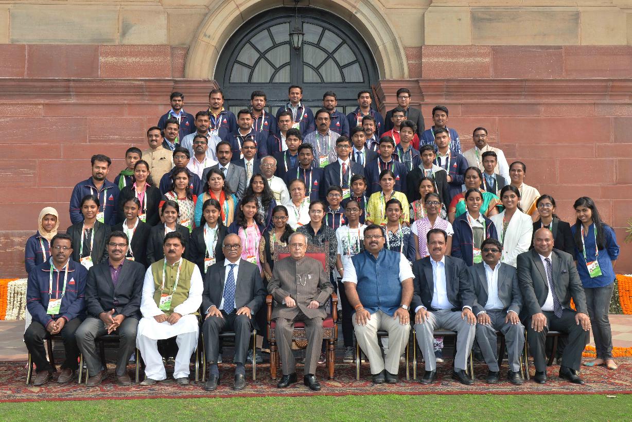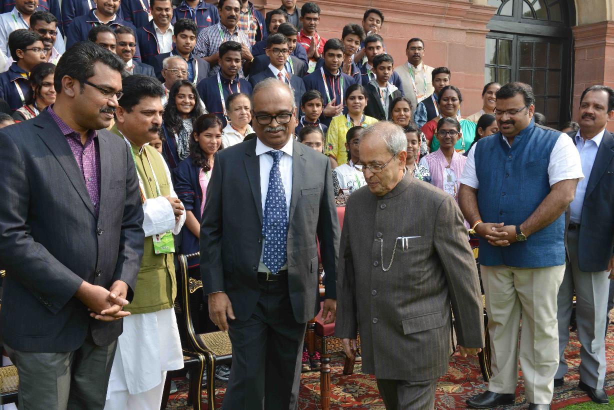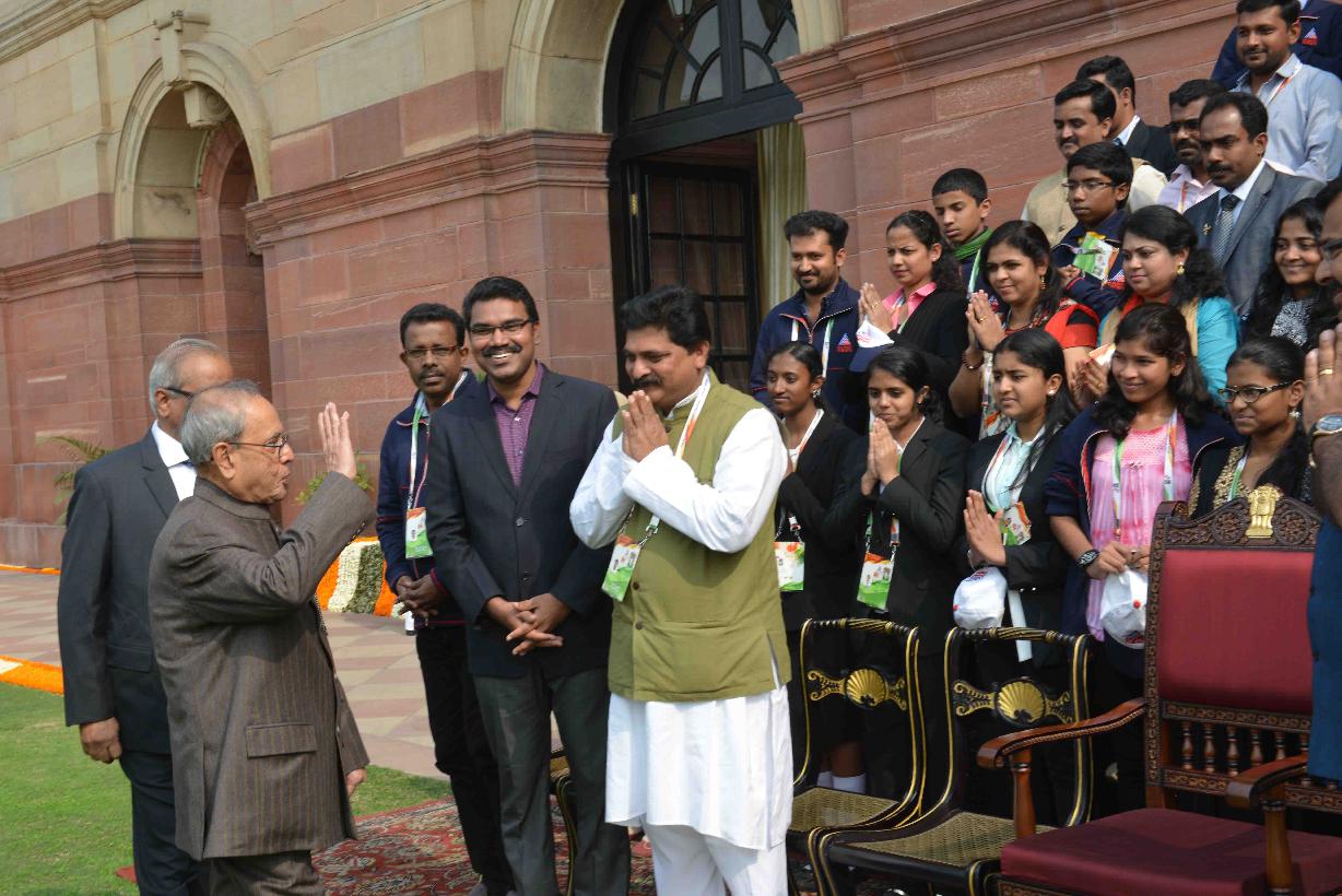 | Caption: | The President of India, Shri Pranab Mukherjee meeting with the students & teachers from UAE and Kerala attending the Programme 'Proud to be an Indian', organised by the Asianet News, Thiruvananthapuram, at Rashtrapati Bhavan on January 29, 2016. |