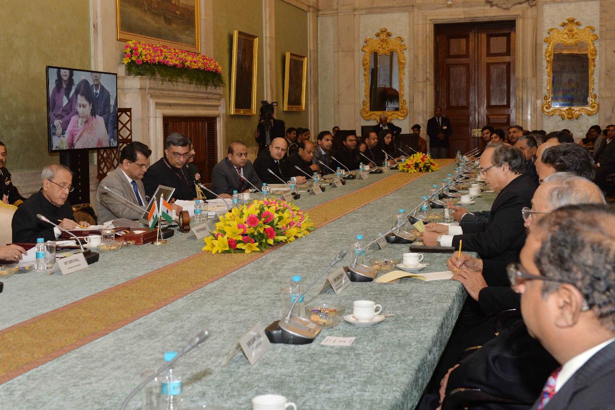| Caption: | The President of India, Shri Pranab Mukherjee interacting with leading Silicon Valley Entrepreneurs, Technologists and Venture Capitalists, at Rashtrapati Bhavan on January 15, 2016. |