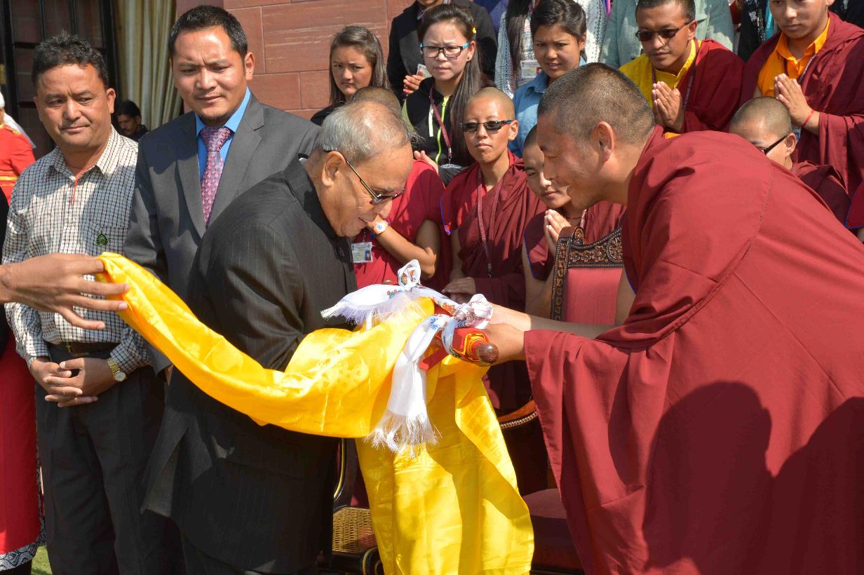 | Caption: | The President of India, Shri Pranab Mukherjee in group photograph with the students from the Central Institute of Buddhist Studies (CIBS), Choglamsar, Leh, Ladakh at Rashtrapati Bhavan on February 04, 2016. |