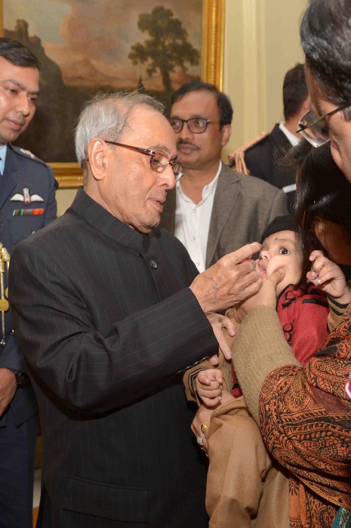 | Caption: | The President of India, Shri Pranab Mukherjee launching the Nationwide Polio Programme by administering Polio drops to the Children, at Rashtrapati Bhavan on January 16, 2016. |