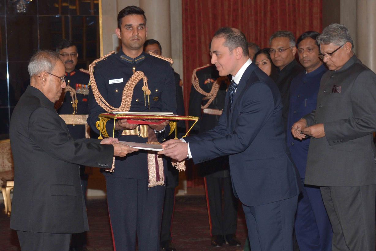 | Caption: | The High Commissioner-designate of Malta, HE Mr. Stephen Borg presenting his Credentials to the President of India, Shri Pranab Mukherjee, at Rashtrapati Bhavan on February 03, 2016. |