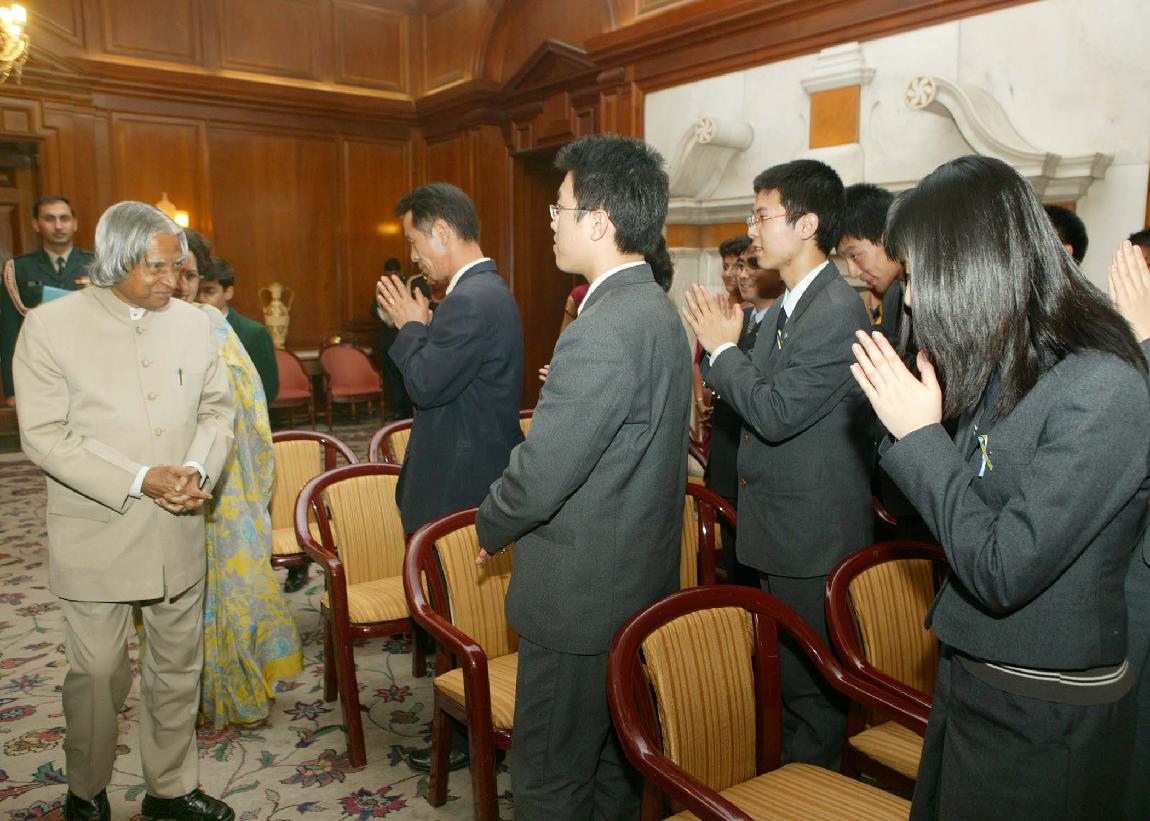 | Caption: | The Student from Anyang Foreign Language High School Korea and Delhi Public School RK Puram & Vasant Vihar calling on the President of India, Dr A P J Abdul Kalam at the Committee Room of Rashtrapati Bhavan in New Delhi on Dec 02, 2004 |