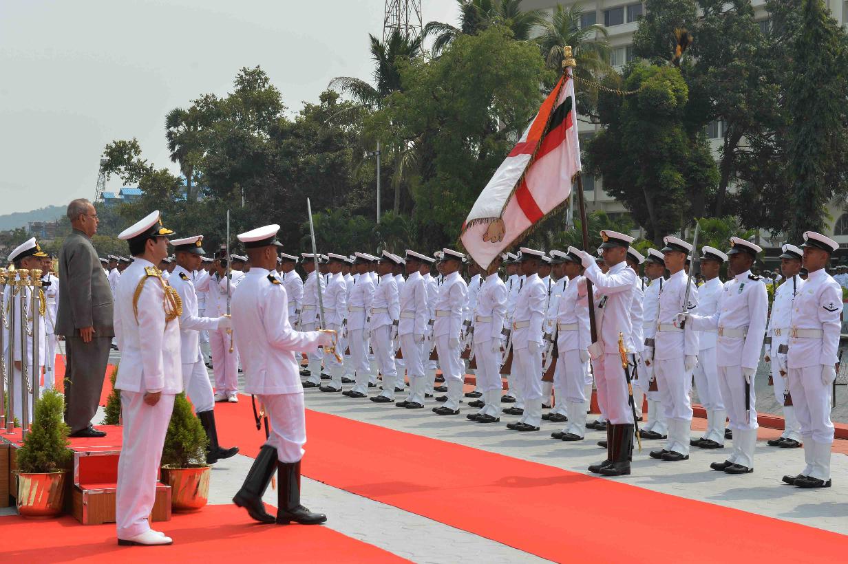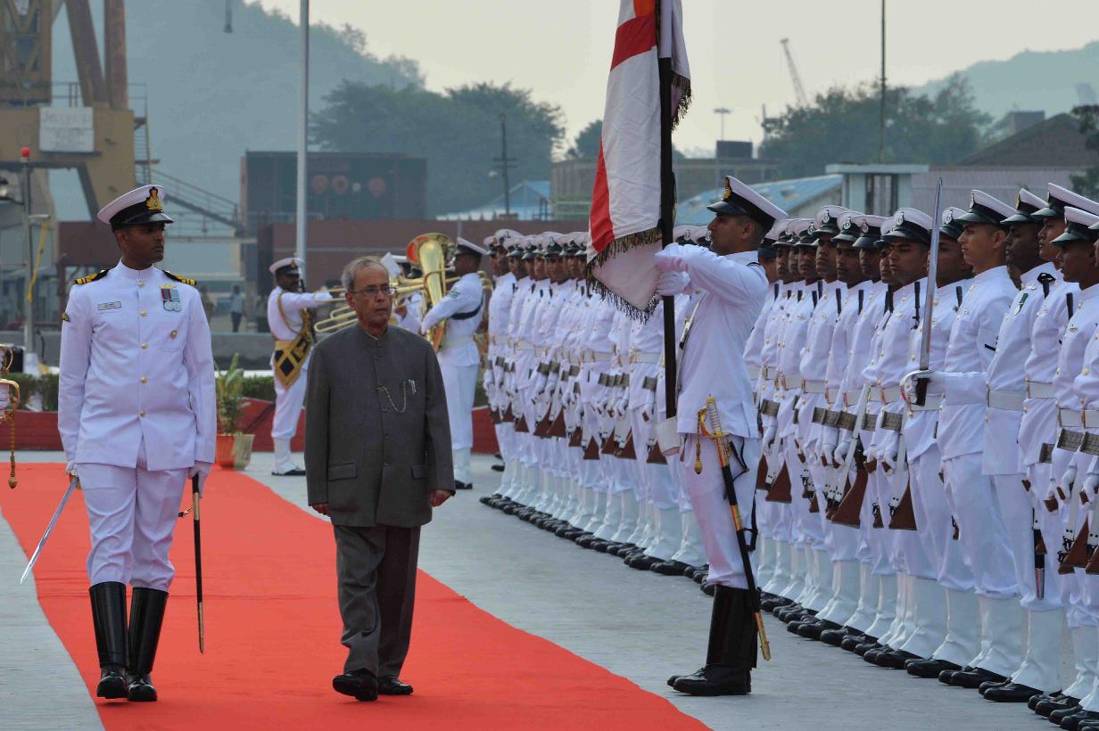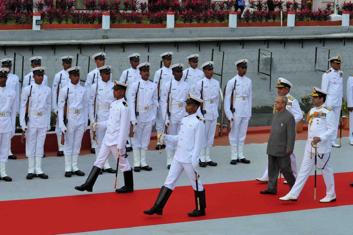 | Caption: | The President of India, Shri Pranab Mukherjee inspecting the Guard of Honour at the International Fleet Review-2016, at Visakhapatnam on February 06, 2016. |