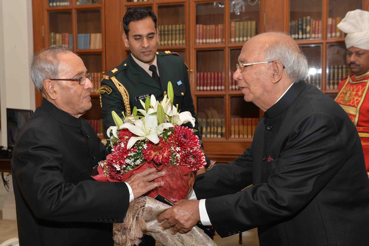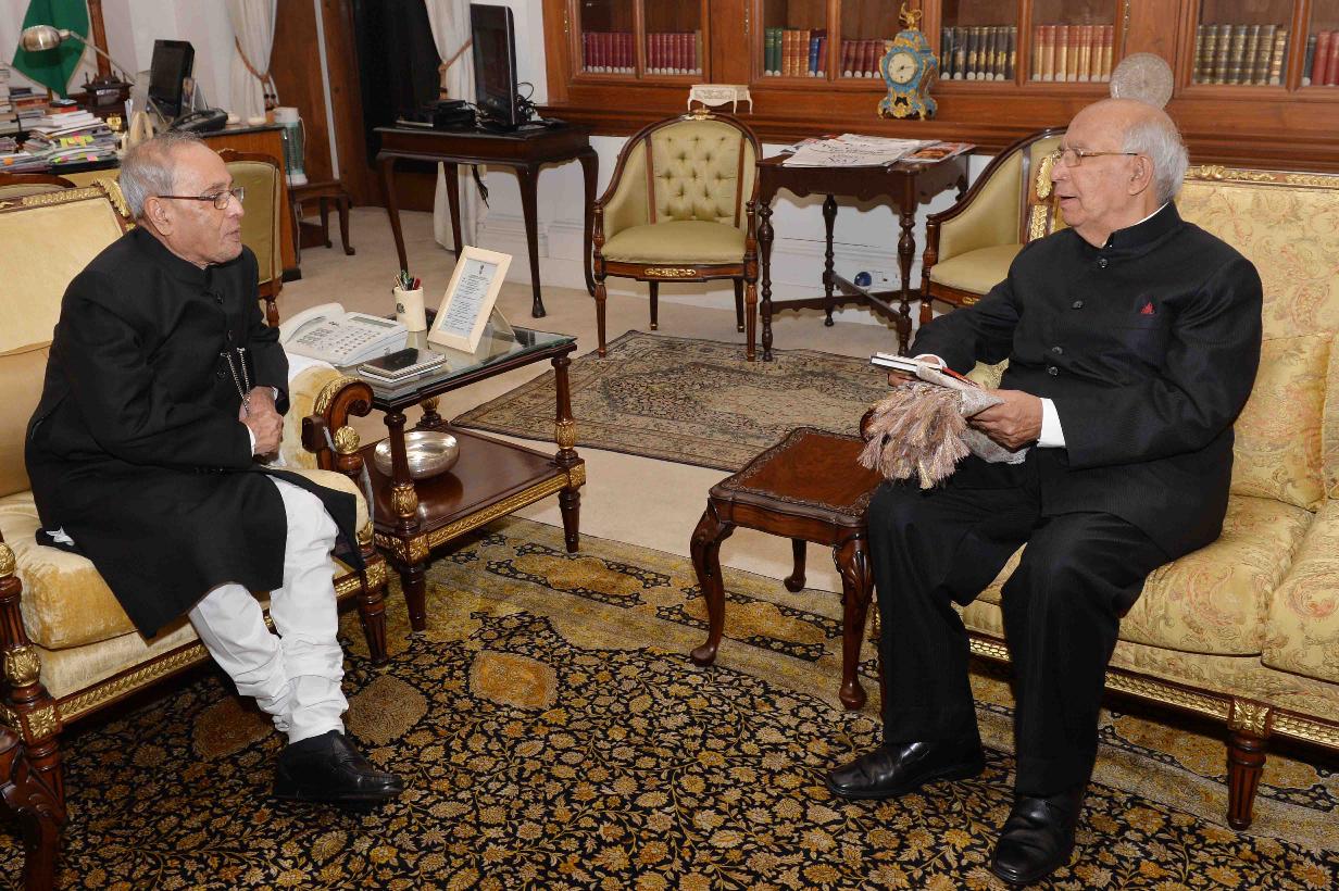 | Caption: | The President of India, Shri Pranab Mukherjee meeting with Shri Hansraj Bhardwaj, former Governor of Karnataka, at Rashtrapati Bhavan on February 10, 2016. |