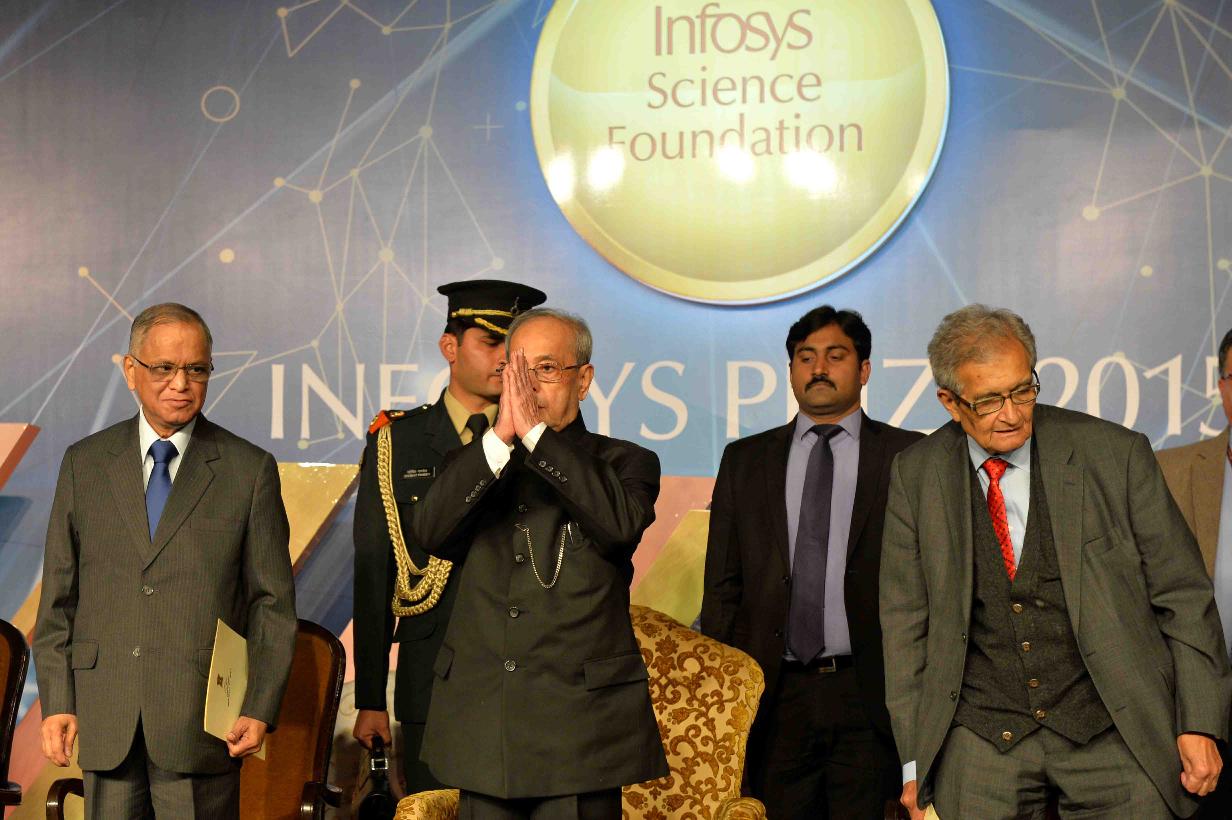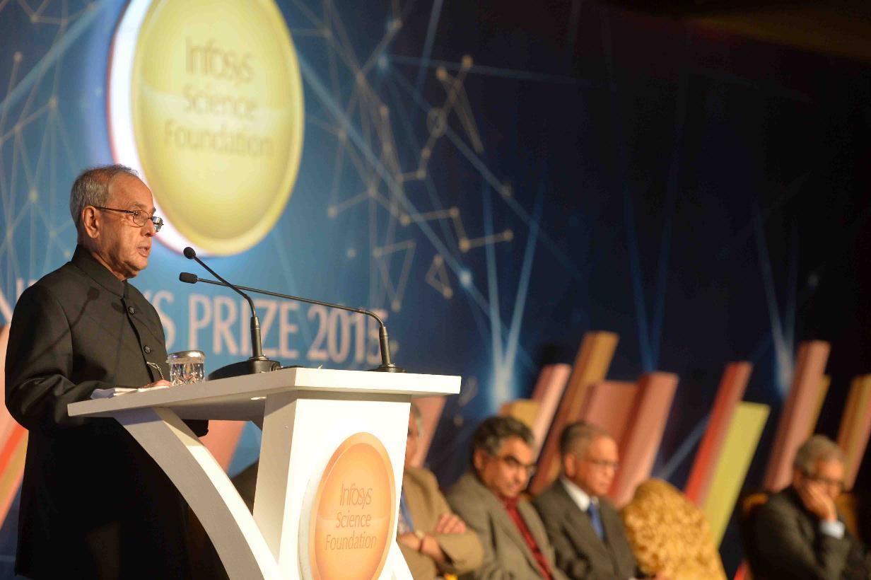 | Caption: | The President of India, Shri Pranab Mukherjee presenting the Infosys Prizes for the year 2015, in New Delhi on February 13, 2016. |