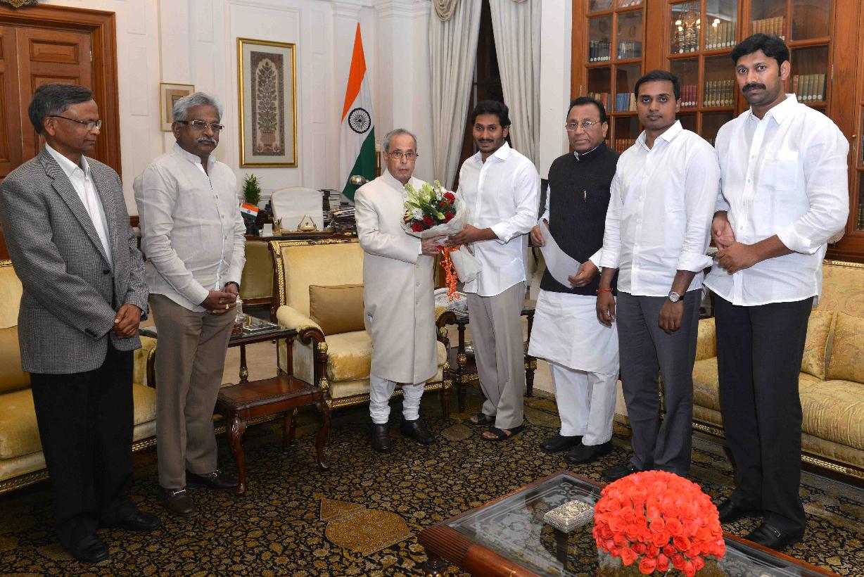 | Caption: | The President of India, Shri Pranab Mukherjee meeting with a delegation of MPs and Leaders of YSR Congress Party led by Shri Y.S. Jagan Mohan Reddy, President of YSR Congress Party and Leader of Opposition, Andhra Pradesh Legislative Assembly, at Rashtrapati Bhavan on February 23, 2016. |
