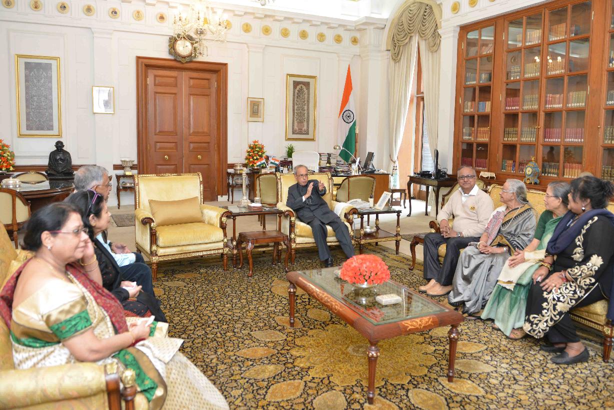 | Caption: | The President of India, Shri Pranab Mukherjee meeting with Smt. Krishna Som with others from Kolkata, at Rashtrapati Bhavan on February 20, 2016. |