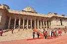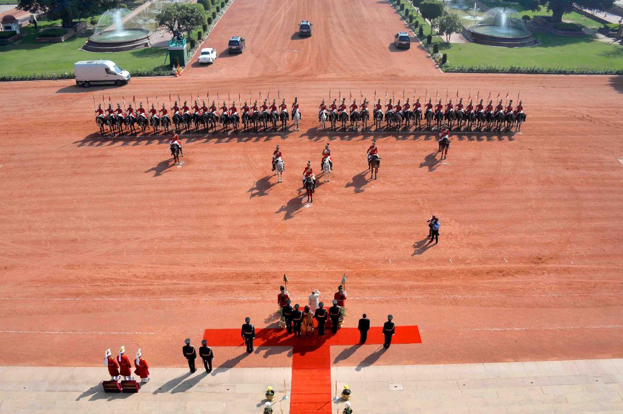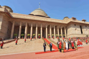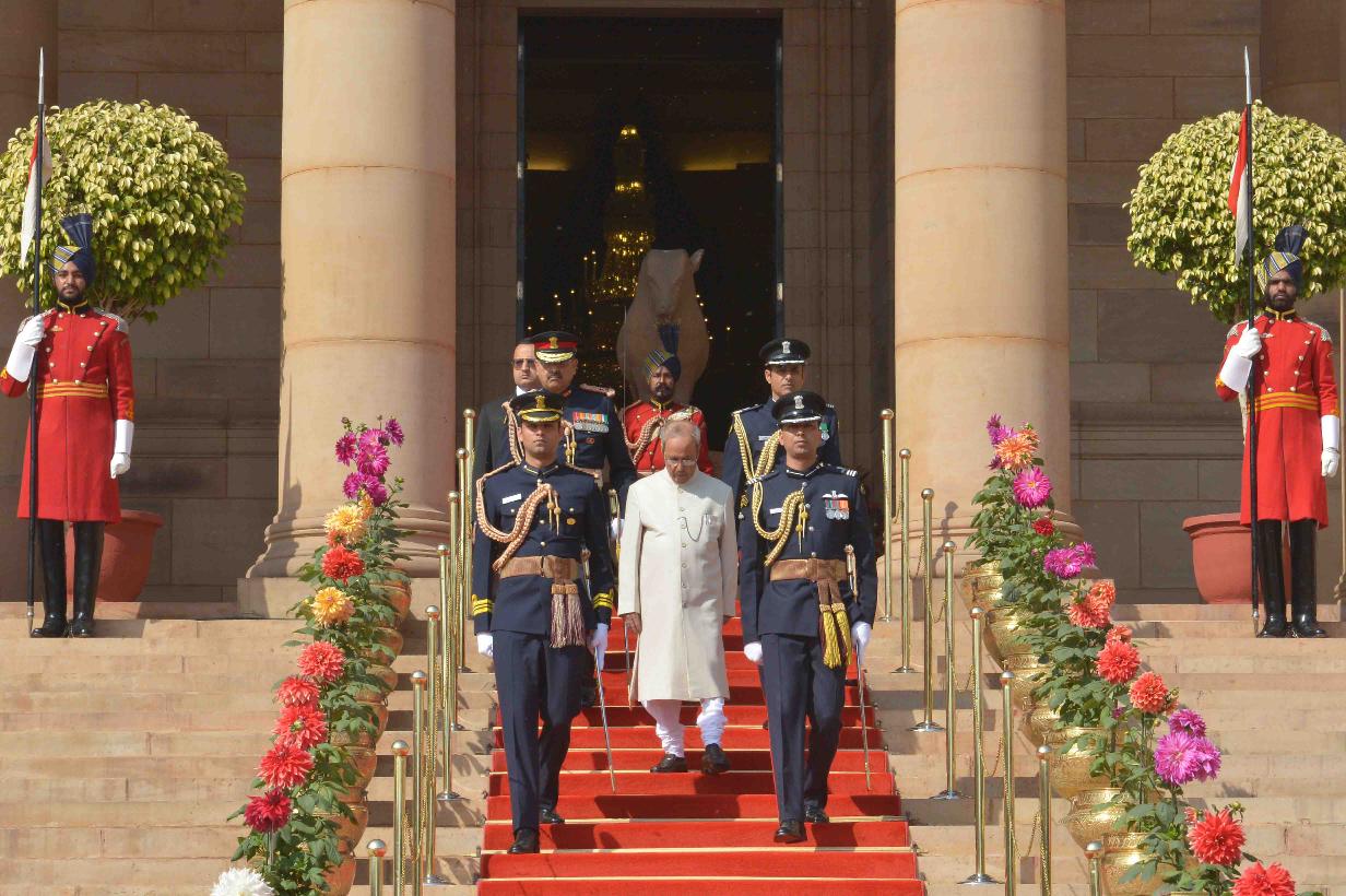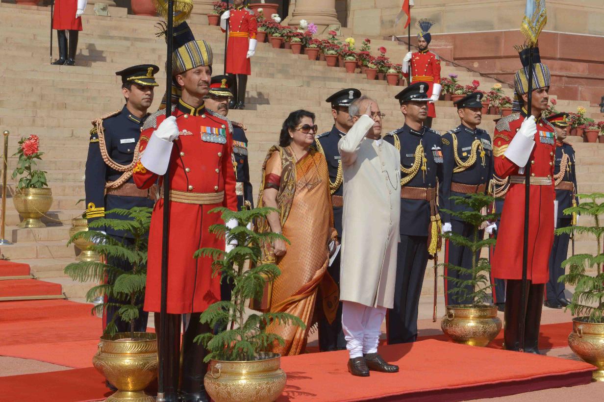 | Caption: | The President of India, Shri Pranab Mukherjee receiving the National Salute from the President's Body Guard (PBG) at Forecourt of Rashtrapati Bhavan before leaving for Central Hall of Parliament to deliver his address to both the Houses of Parliament in New Delhi on February 23, 2016. |
