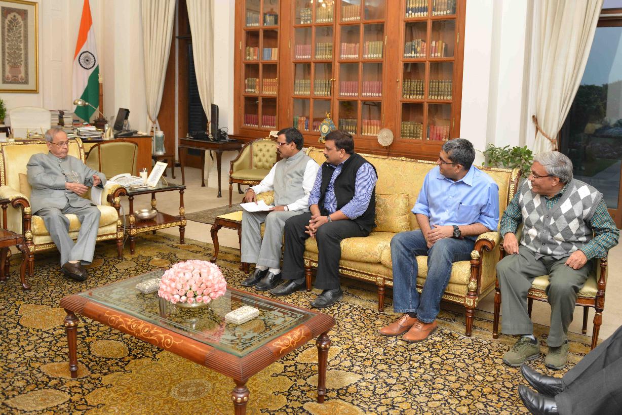 | Caption: | The President of India, Shri Pranab Mukherjee meeting with Shri Ras Bihari, President with others from National Union of Journalists (India), at Rashtrapati Bhavan on February 29, 2016. |