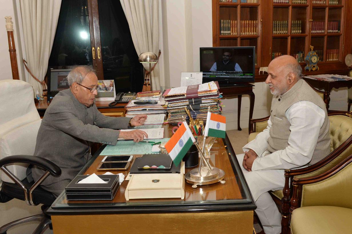 | Caption: | The President of India, Shri Pranab Mukherjee meeting with Shri Anil Kumar Sharma, Ex-President, Bihar Pradesh Congress Committee, at Rashtrapati Bhavan on February 25, 2016. |