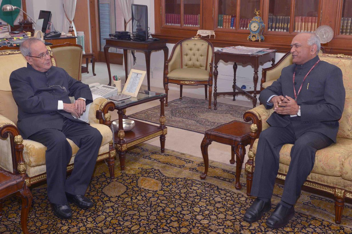 | Caption: | The President of India, Shri Pranab Mukherjee meeting with Shri R.K. Mathur, Chief Information Commissioner, at Rashtrapati Bhavan on January 11, 2016. |
