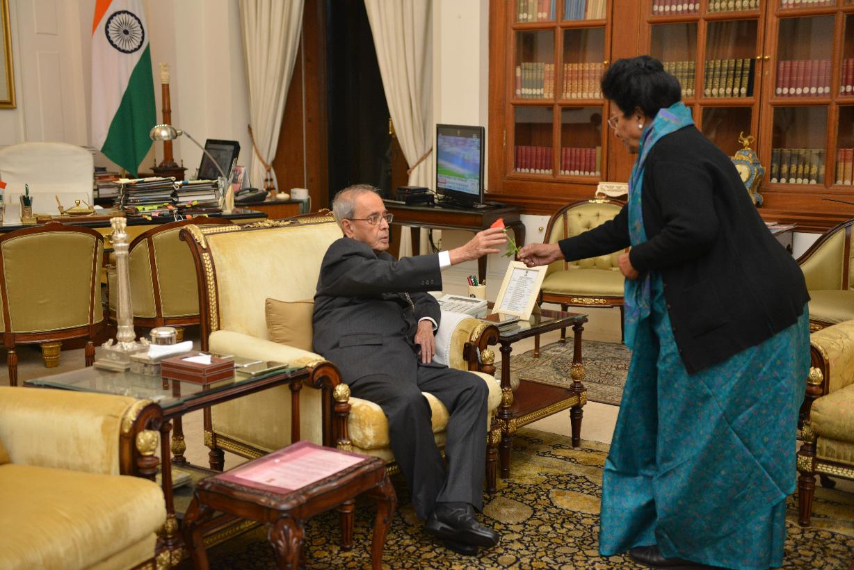 | Caption: | The President of India, Shri Pranab Mukherjee meeting with Ms. Saroj Khaparde, former Union Minister, at Rashtrapati Bhavan on January 11, 2016. |