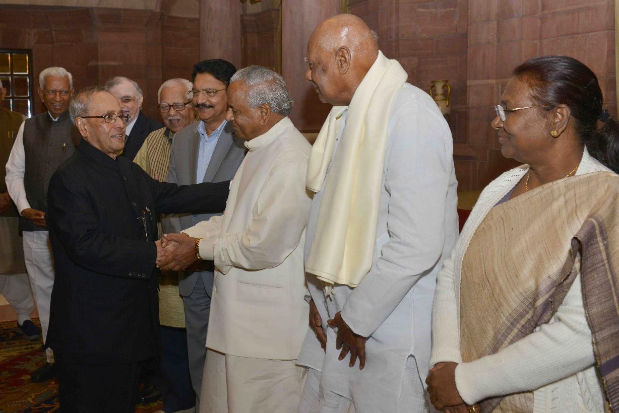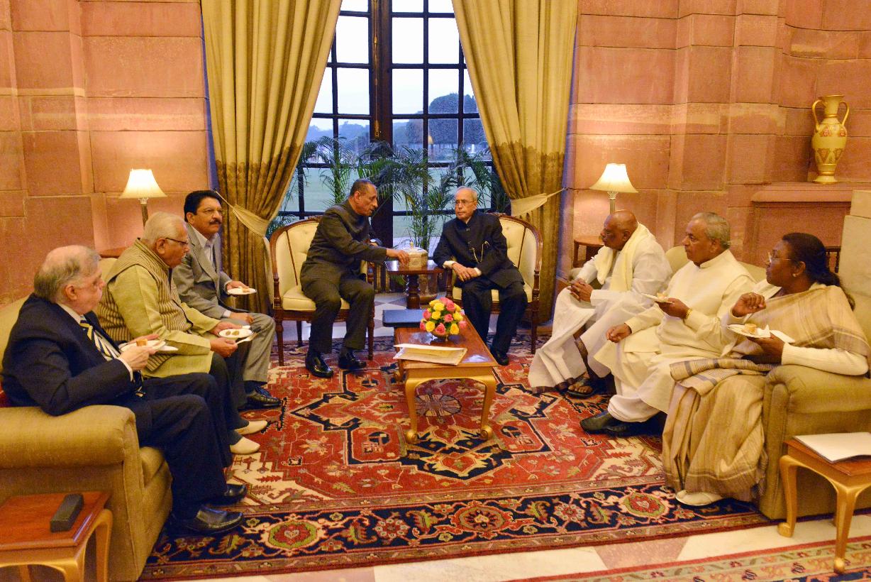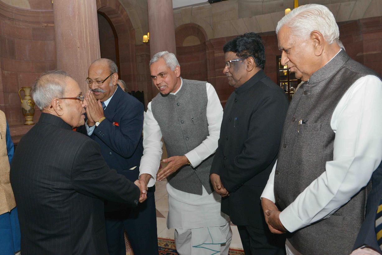 | Caption: | The President of India, Shri Pranab Mukherjee during Tea with the Governors/Lt. Governors attending Conference of Governors, at Rashtrapati Bhavan on February 08, 2016. |