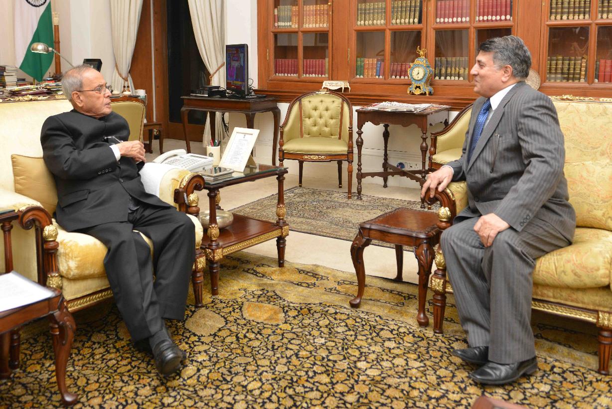 | Caption: | The President of India, Shri Pranab Mukherjee meeting with Shri G.R. Sufi, J&K State Chief Information Commissioner, at Rashtrapati Bhavan on February 19, 2016. |