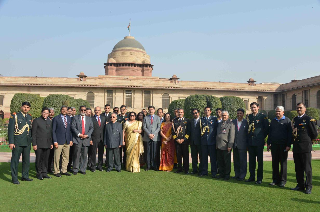 | Caption: | The President of India, Shri Pranab Mukherjee with the members of Audio-Visual media and Officers of Rashtrapati Bhavan, at Mughal Garden on February 11, 2016. |