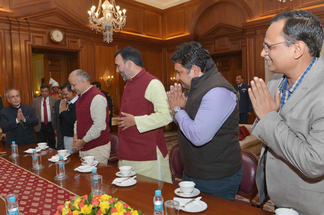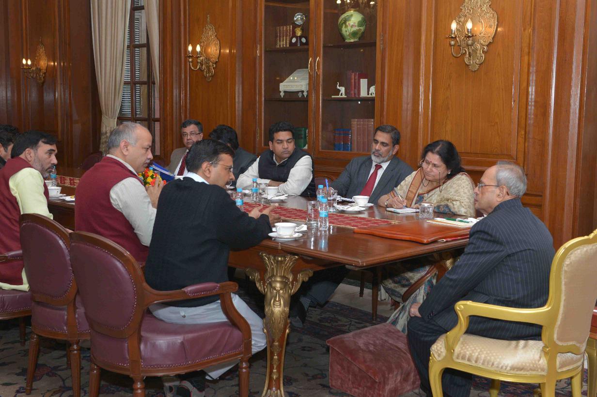 | Caption: | The President of India, Shri Pranab Mukherjee meeting with the Chief Minister, NCT of Delhi, Shri Arvind Kejriwal and Cabinet Ministers of NCT of Delhi, at Rashtrapati Bhavan on February 18, 2016. |