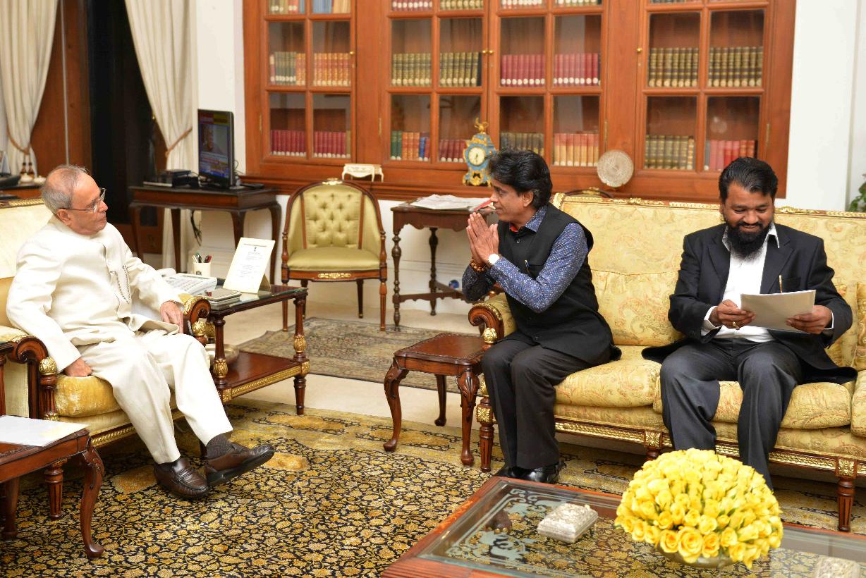 | Caption: | The President of India, Shri Pranab Mukherjee meeting with Shri Shailesh Patil son of Shri Shivraj Patil, former Governor of Punjab alongwith Shri Akhtar Sheikh, Mayor of Latur, at Rashtrapati Bhavan on February 12, 2016. |