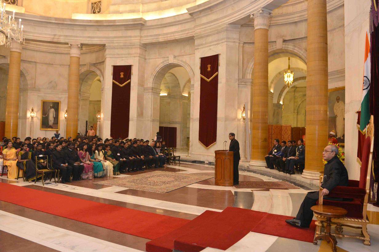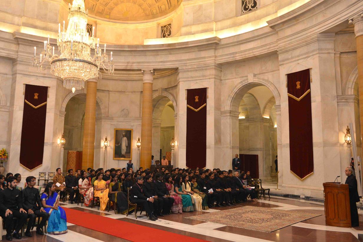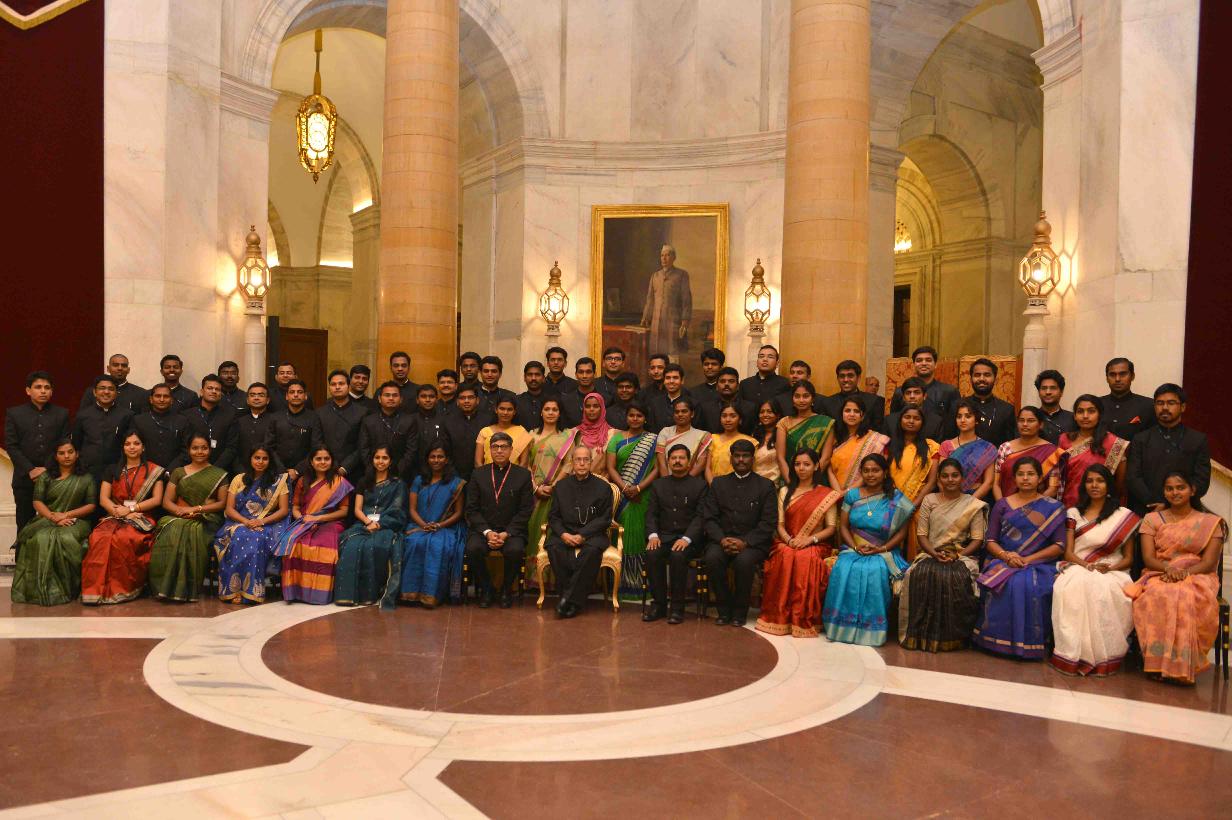 | Caption: | The President of India, Shri Pranab Mukherjee interacting with the Officer Trainees of Indian Administrative Service Professional Course Phase-I for the 2015 batch from Lal Bahadur Shastri National Academy of Administration, Mussoorie, at Rashtrapati Bhavan on February 24, 2016. |