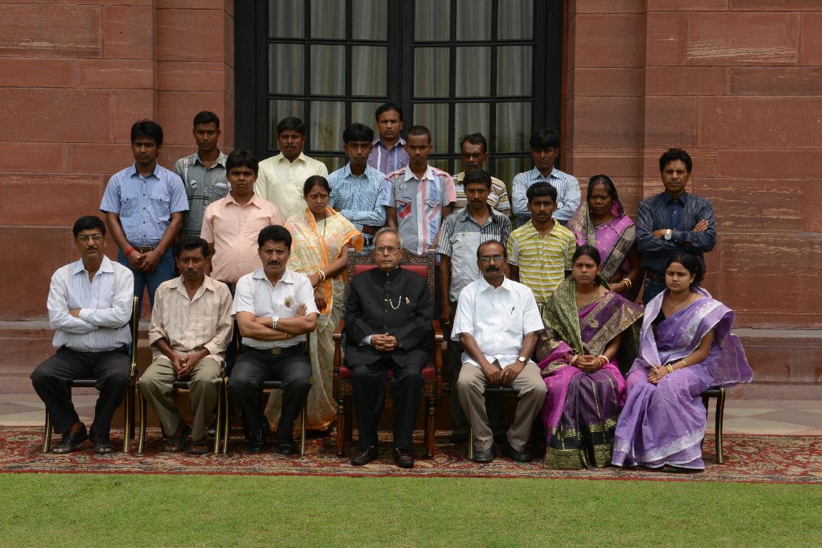 | Caption: | The President of India Shri Pranab Mukherjee Meeting with Shri Dhananjay Maitra With Others from Kamduni & Majlispur Village District 24 Parganas (North) on July 15, 2013 |