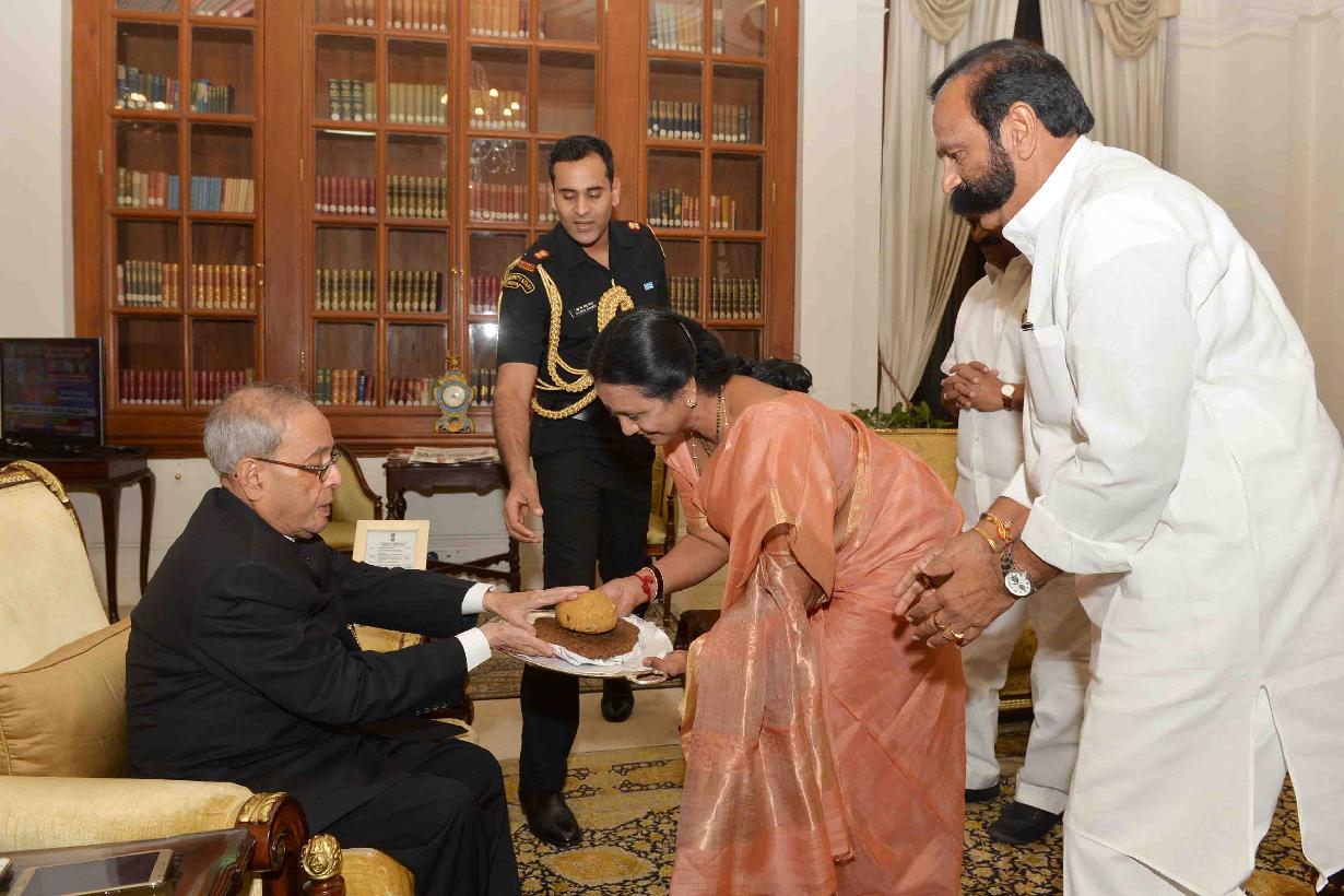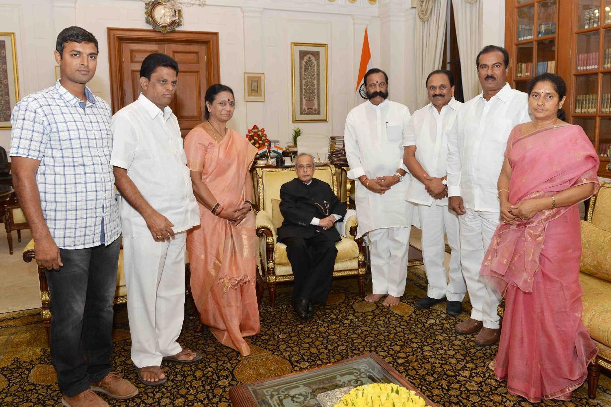 | Caption: | The President of India, Shri Pranab Mukherjee meeting with Shri K. Bapi Raju, Ex-MP (LS) and family, at Rashtrapati Bhavan on March 01, 2016. |