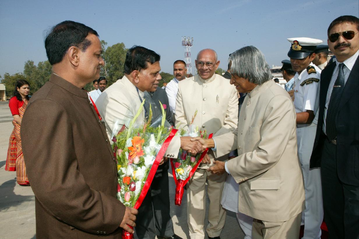 | Caption: | The President of India, Dr A P J Abdul Kalam being welcomed at Vadodara Airport in Gujarat on Dec 14, 2004 |