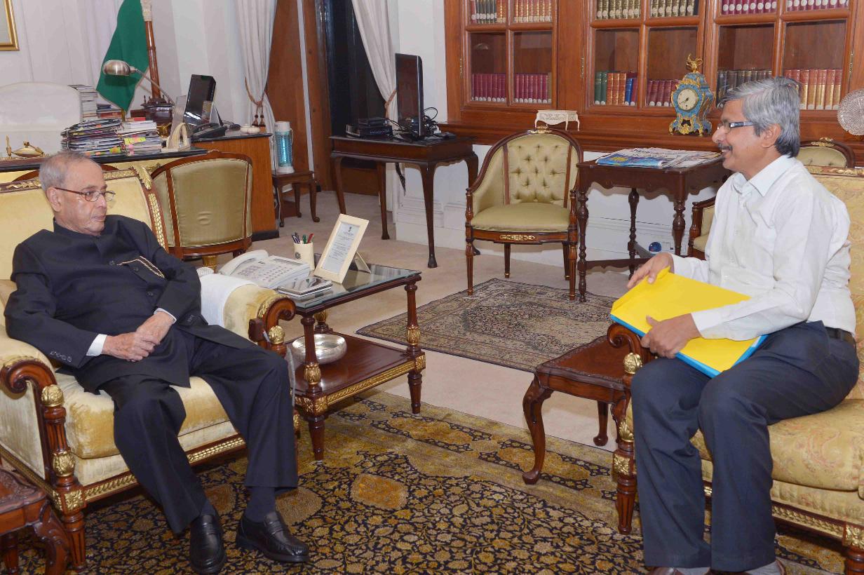| Caption: | The President of India, Shri Pranab Mukherjee meeting with Prof. Ajoy Kumar Ray, Director, Indian Institute of Engineering Science and Technology, Shibpur, at Rashtrapati Bhavan on March 08, 2016. |
