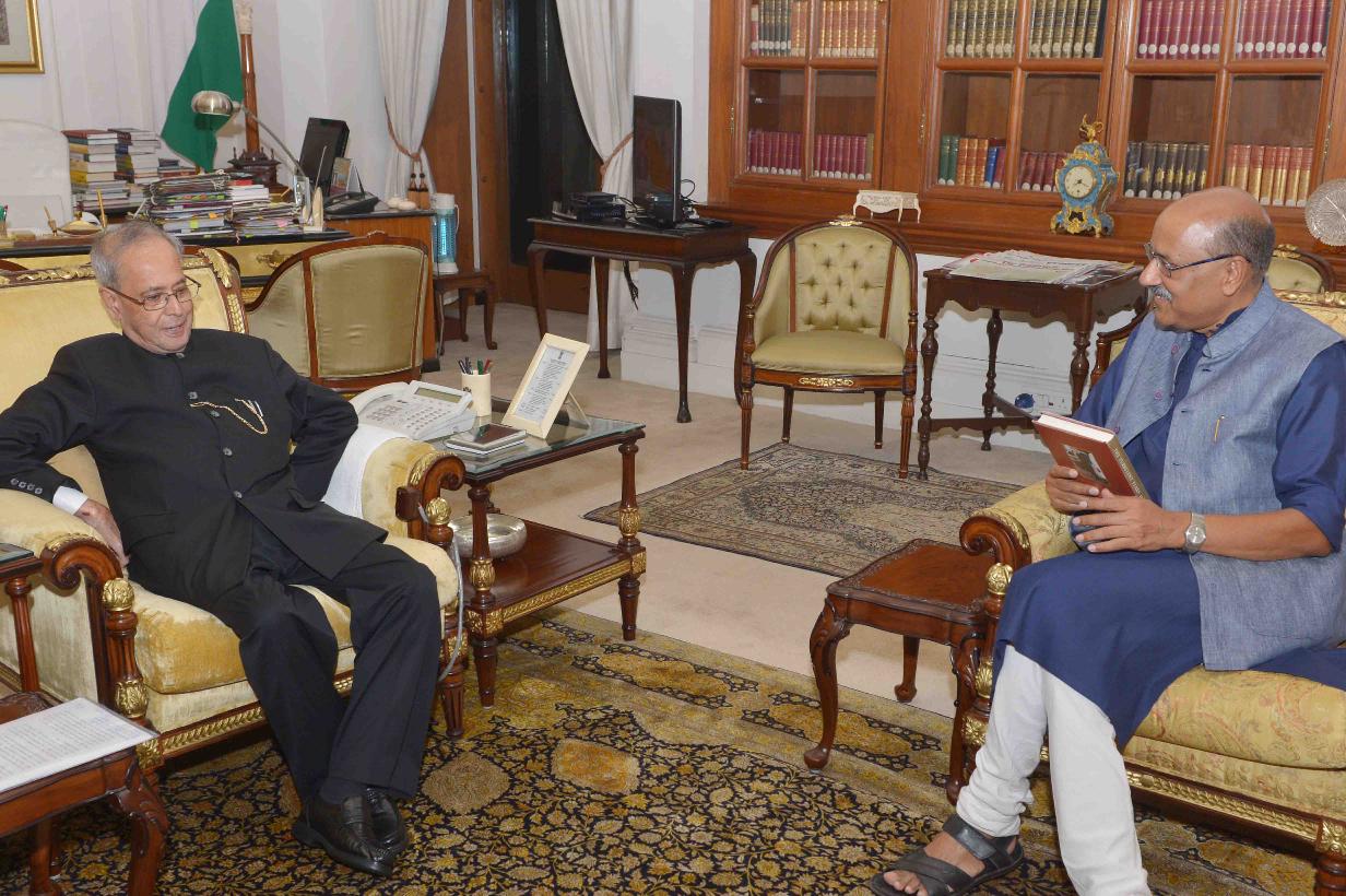 | Caption: | The President of India, Shri Pranab Mukherjee meeting with Shri Shekhar Gupta, at Rashtrapati Bhavan on March 11, 2016. |