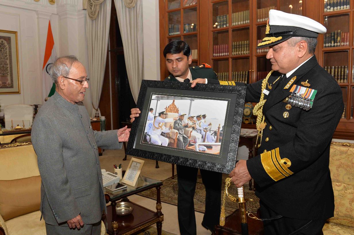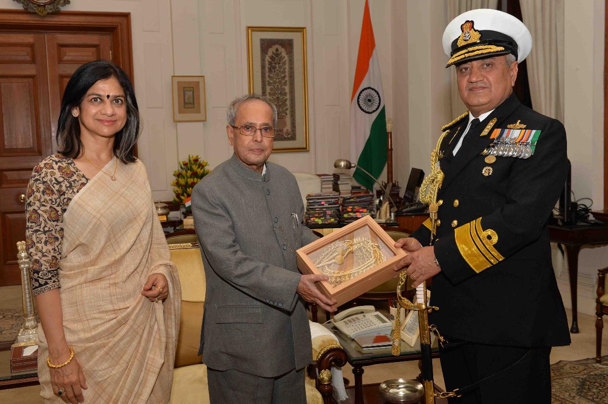 | Caption: | The President of India, Shri Pranab Mukherjee meeting with Vice Admiral Satish Soni, Flag Officer Commanding-in-Chief, HQ Eastern Naval Command & Hony ADC to the President alongwith his wife Smt. Payal Soni from Visakhapatnam, at Rashtrapati Bhavan on February 25, 2016. |
