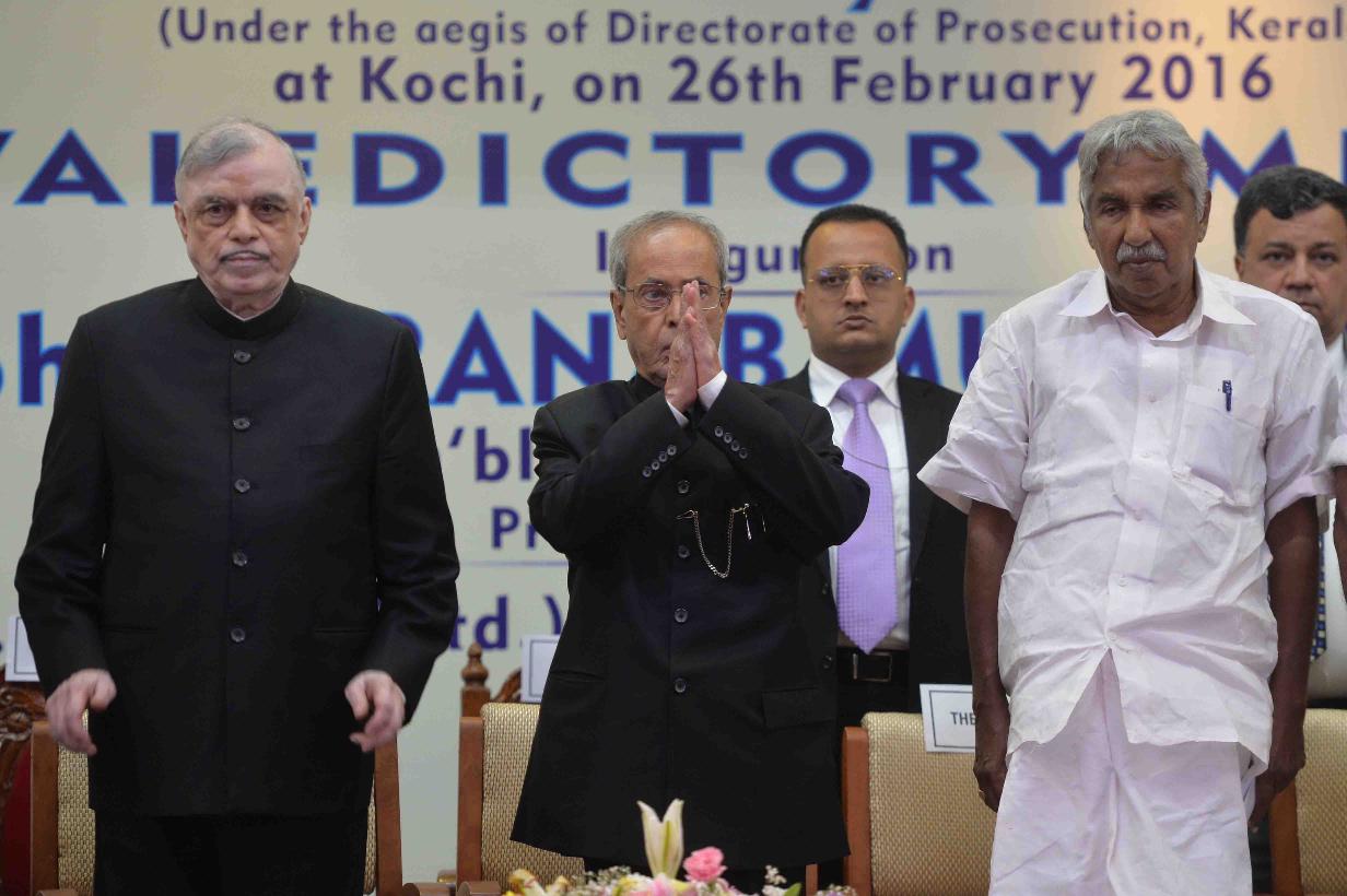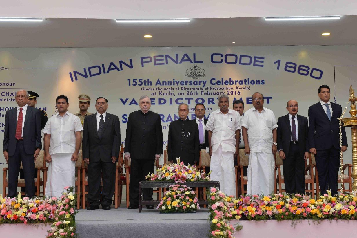 | Caption: | The President of India, Shri Pranab Mukherjee at the inauguration of Valedictory Function of 155th Anniversary of the Indian Penal Code (IPC), 1860, organized by the Directorate of Prosecution, Kerala, at Kochi, in Kerala on February 26, 2016. |