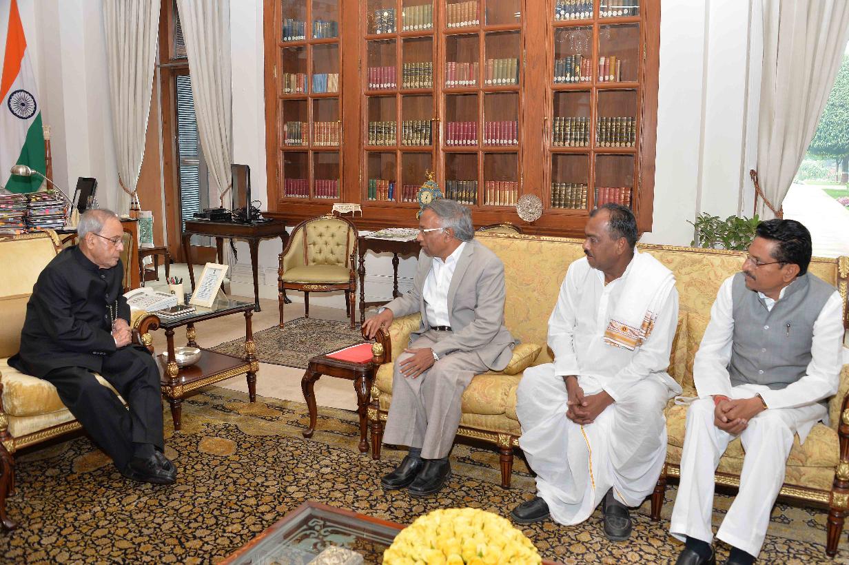 | Caption: | The President of India, Shri Pranab Mukherjee meeting with Dr. Vijay Bhatkar alongwith Shri Narayan Mod and Shri Vijayrao Raut from Gulabrao Maharaj Sarvoday Trust, Alandi, Pune, at Rashtrapati Bhavan on February 19, 2016. |
