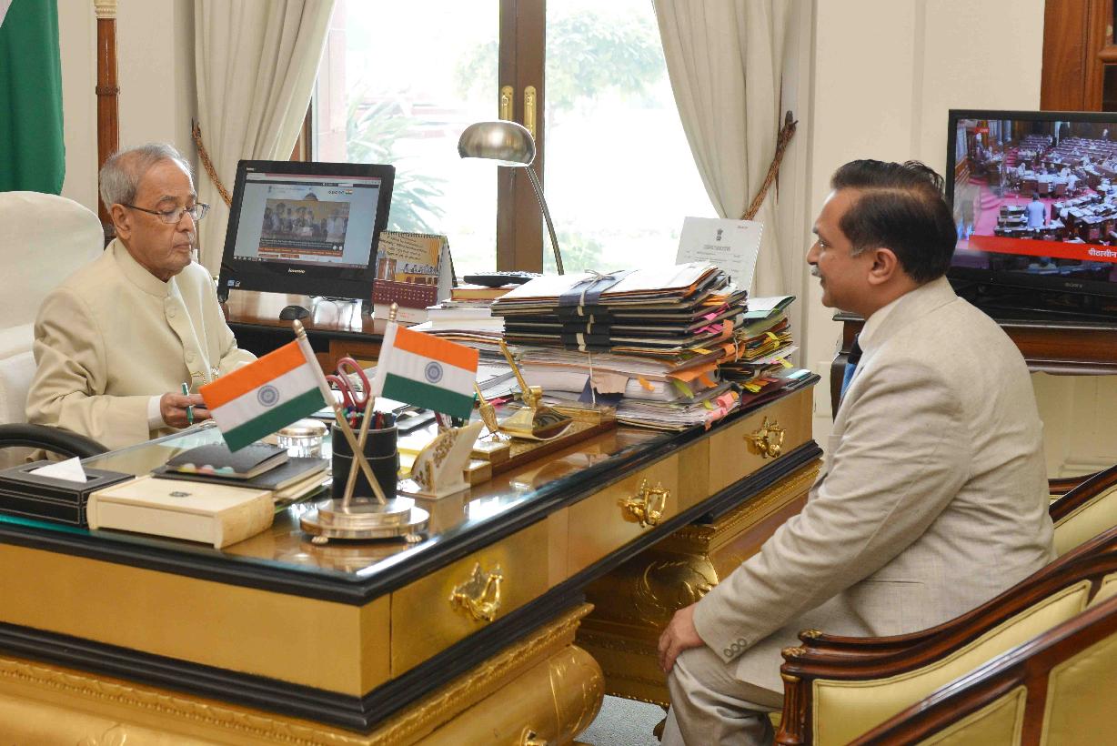 | Caption: | The President of India, Shri Pranab Mukherjee meeting with Shri Somesh Khare son of Shri Justice VN Khare, former Chief Justice of India, at Rashtrapati Bhavan on March 02, 2016. |