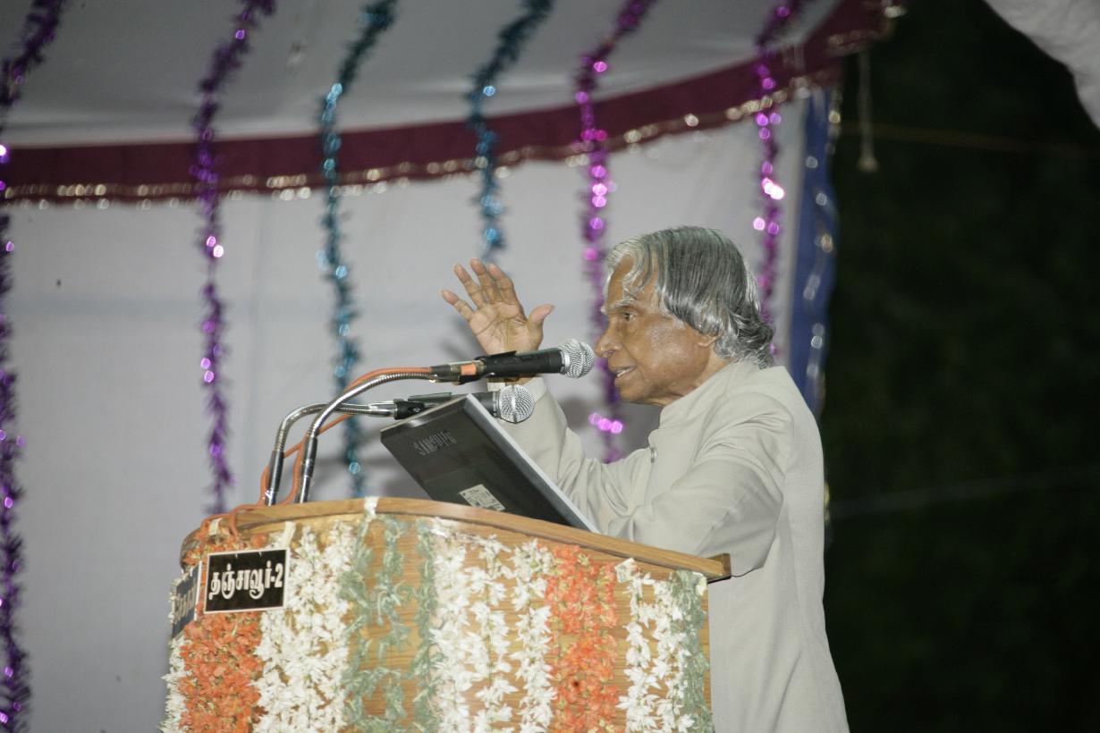 | Caption: | The President of India, Dr A P J Abdul Kalam addressing at the Golden Jubilee Celebrations of a Veeriya Vandayar Memorial Sri Pushpam College at Thanjavur in Tamil Nadu on Sep 24, 2006 |