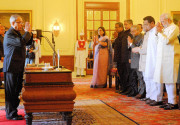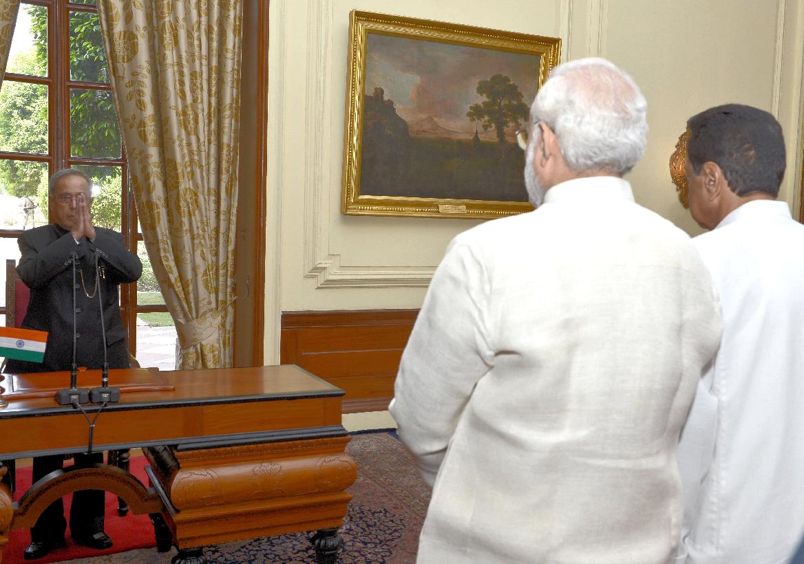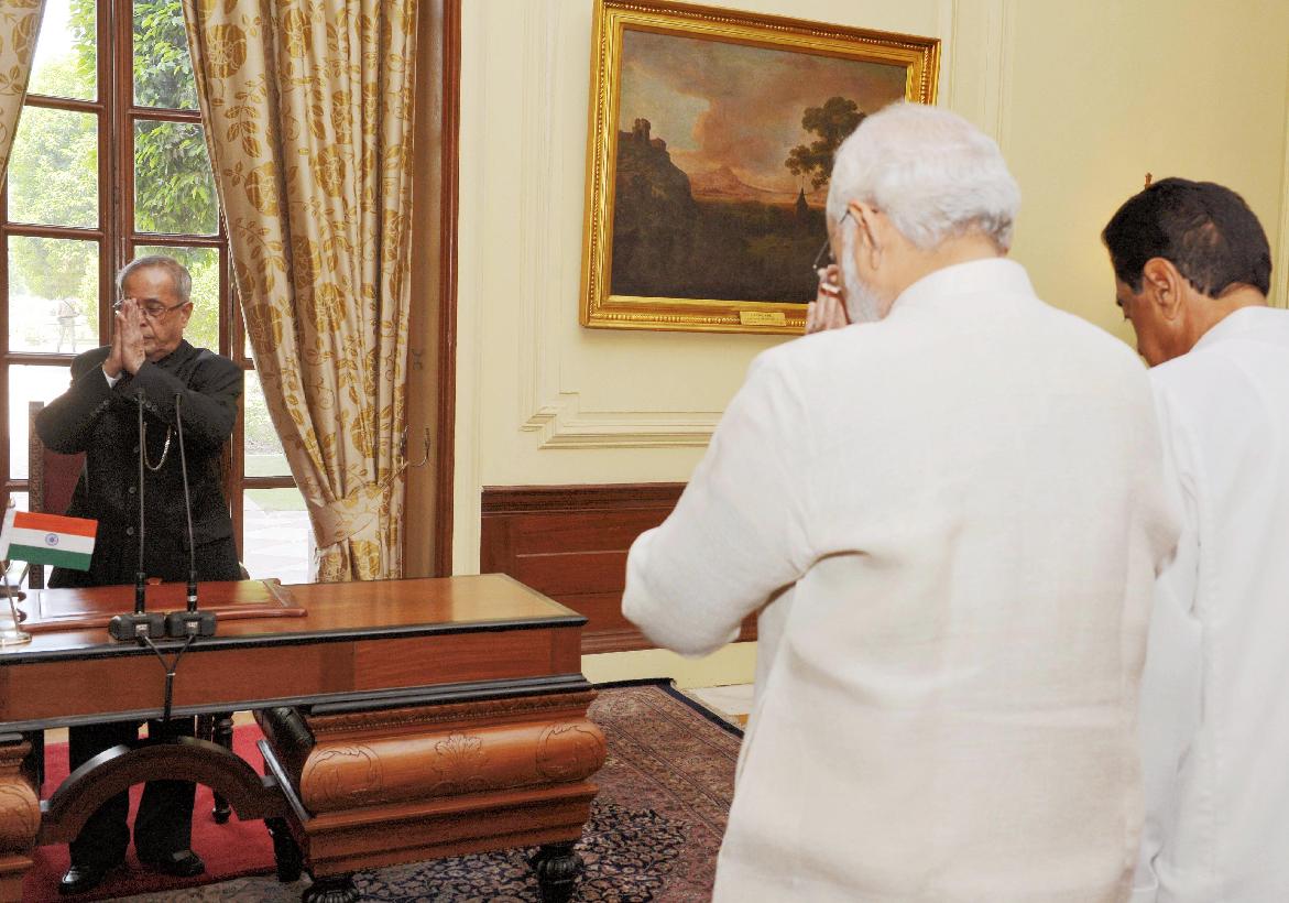 | Caption: | The President of India, Shri Pranab Mukherjee at the Swearing-in-Ceremony of the Speaker Pro-Term of Lok Sabha, Shri Kamal Nath at Rashtrapati Bhavan in New Delhi on June 04, 2014 |