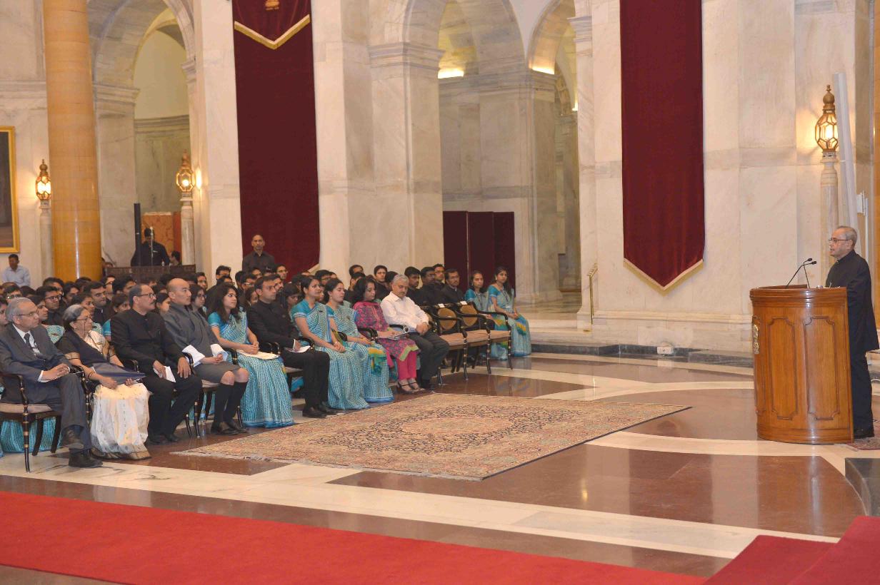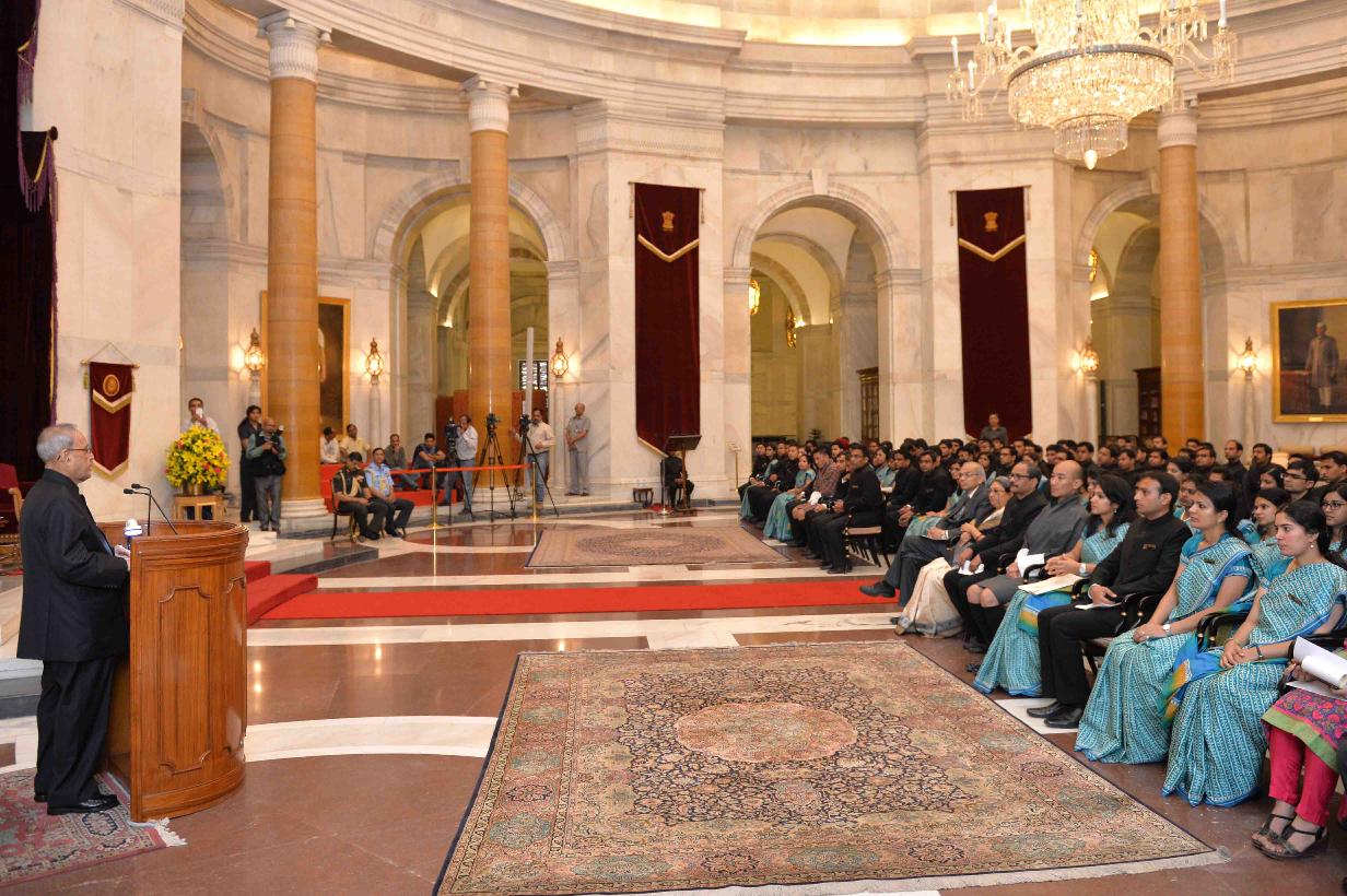 | Caption: | The President of India, Shri Pranab Mukherjee interacting with Officer Trainees of 69th batch of the Indian Revenue Service from National Academy of Direct Taxes, Nagpur, at Rashtrapati Bhavan on March 10, 2016. |
