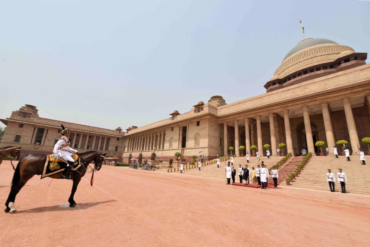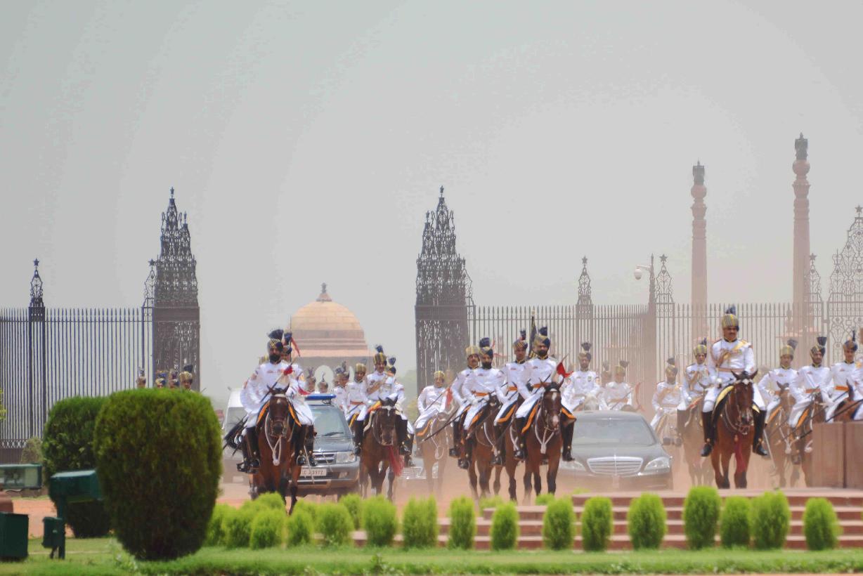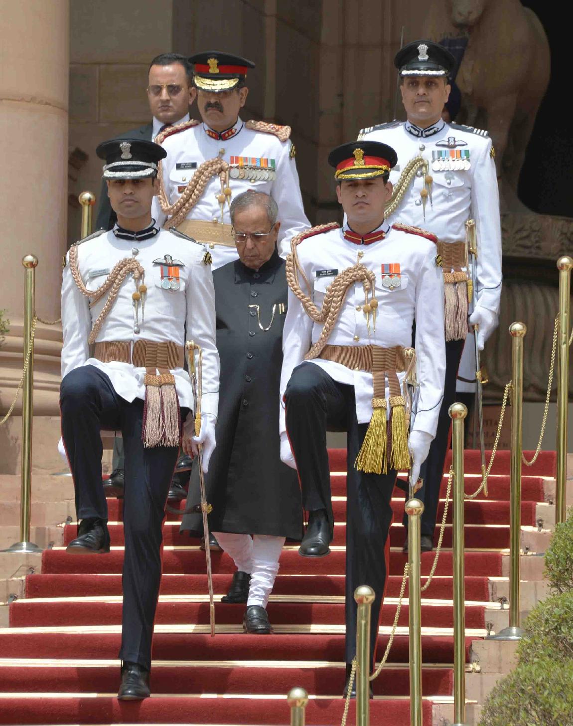 | Caption: | The President's Body Guard (PBG) presenting the National Salute to the President of India, Shri Pranab Mukherjee before leaving for Central Hall of Parliament to delivering his address to both the Houses of Parliament at the Forecourt of Rashtrapati Bhavan in New Delhi on June 09, 2014 |
