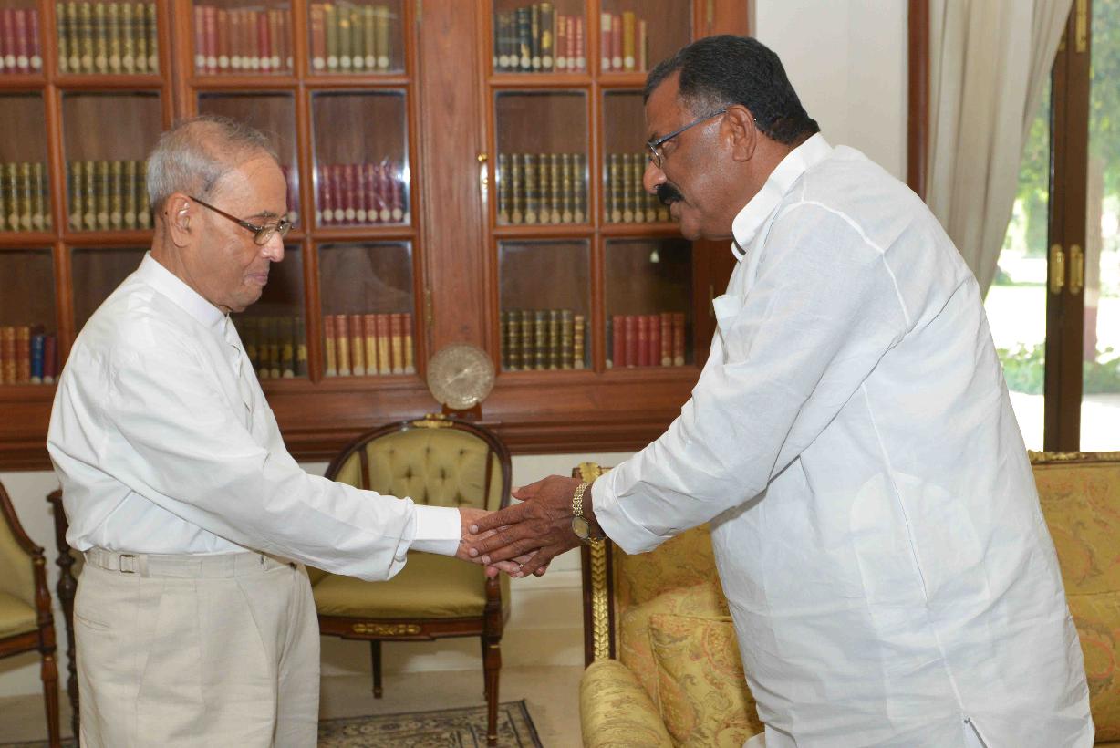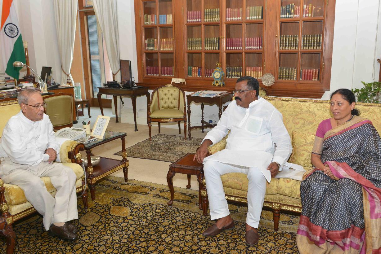 | Caption: | The President of India, Shri Pranab Mukherjee meeting with Shri Kotla Jaya Surya Prakash Reddy, former MoS for Railways alongwith his wife Smt. Kotla Sutha Reddy, Ex-MLA at Rashtrapati Bhavan on March 12, 2016. |