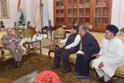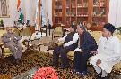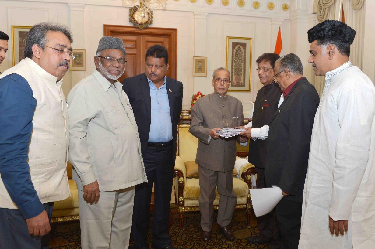 | Caption: | The President of India, Shri Pranab Mukherjee meeting with Shri E. Ahamed, MP (LS) with others, at Rashtrapati Bhavan on March 14, 2016. |