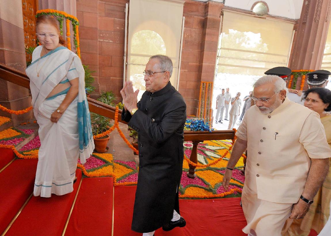 | Caption: | The President of India, Shri Pranab Mukherjee attending the both the House of Parliament in the Central Hall of Parliament House in New Delhi on June 09, 2014 |