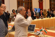 | Caption: | The President of India, Shri Pranab Mukherjee attending the 'Rapporteurs' Summarization on the Global Roundtable on Inclusive Innovation, at Rashtrapati Bhavan on March 12, 2016. |