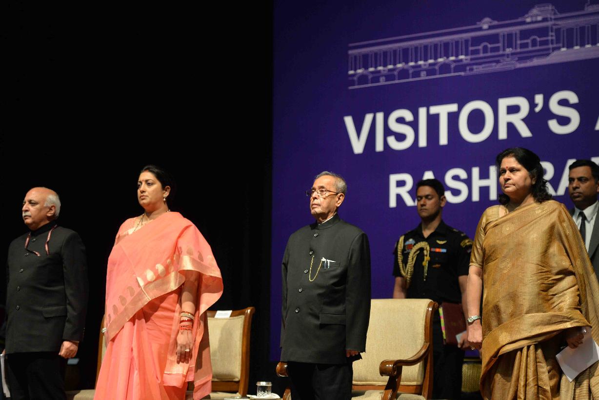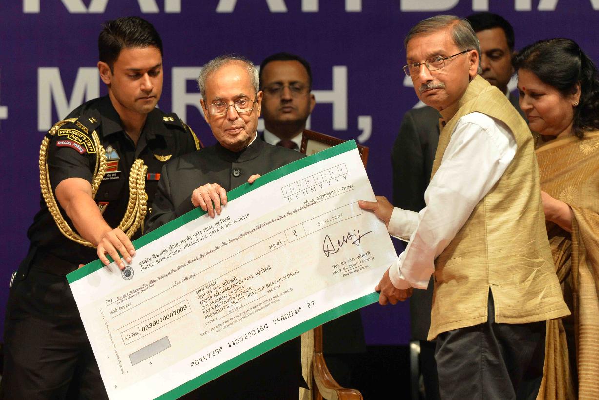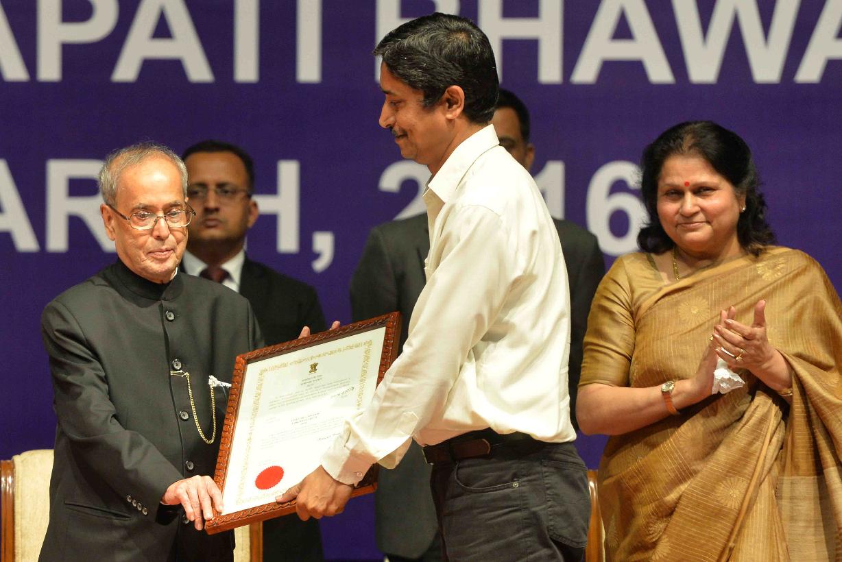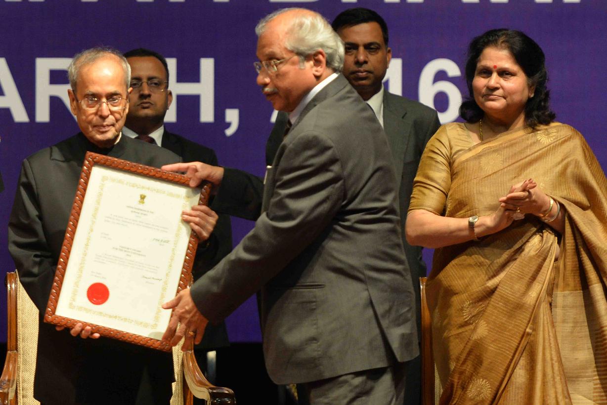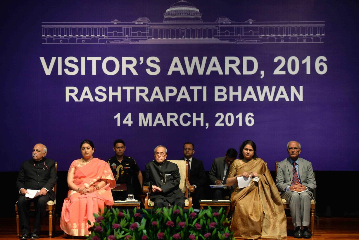 | Caption: | The President of India, Shri Pranab Mukherjee presenting the Visitor s Award - 2016, at Rashtrapati Bhavan Auditorium on March 14, 2016. |