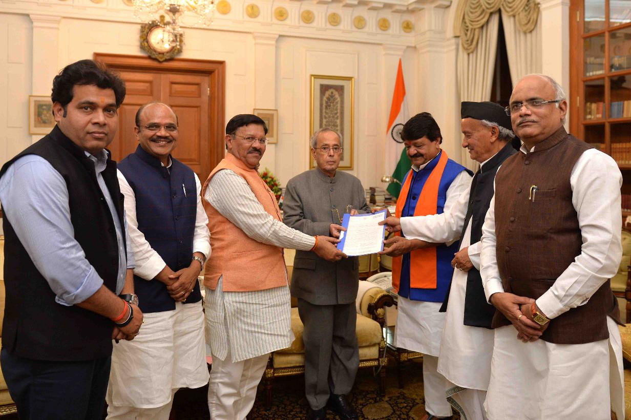 | Caption: | The President of India, Shri Pranab Mukherjee meeting with Shri Kailash Vijaywargiya, National General Secretary of Bharatiya Janata Party with others, at Rashtrapati Bhavan on March 26, 2016. |