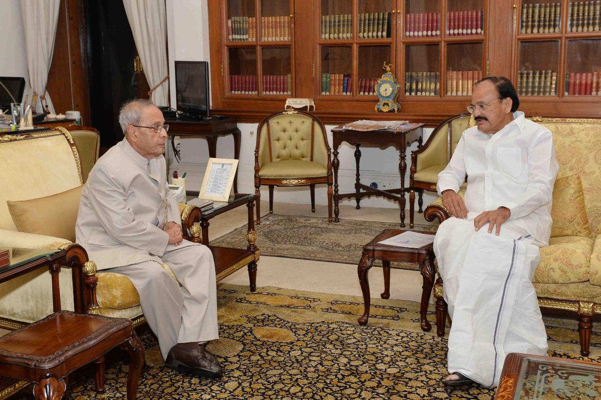 | Caption: | The President of India, Shri Pranab Mukherjee meeting with Shri M. Venkaiah Naidu, Minister of Urban Development, Housing & Urban Poverty Alleviation and Parliamentary Affairs, at Rashtrapati Bhavan on March 29, 2016. |