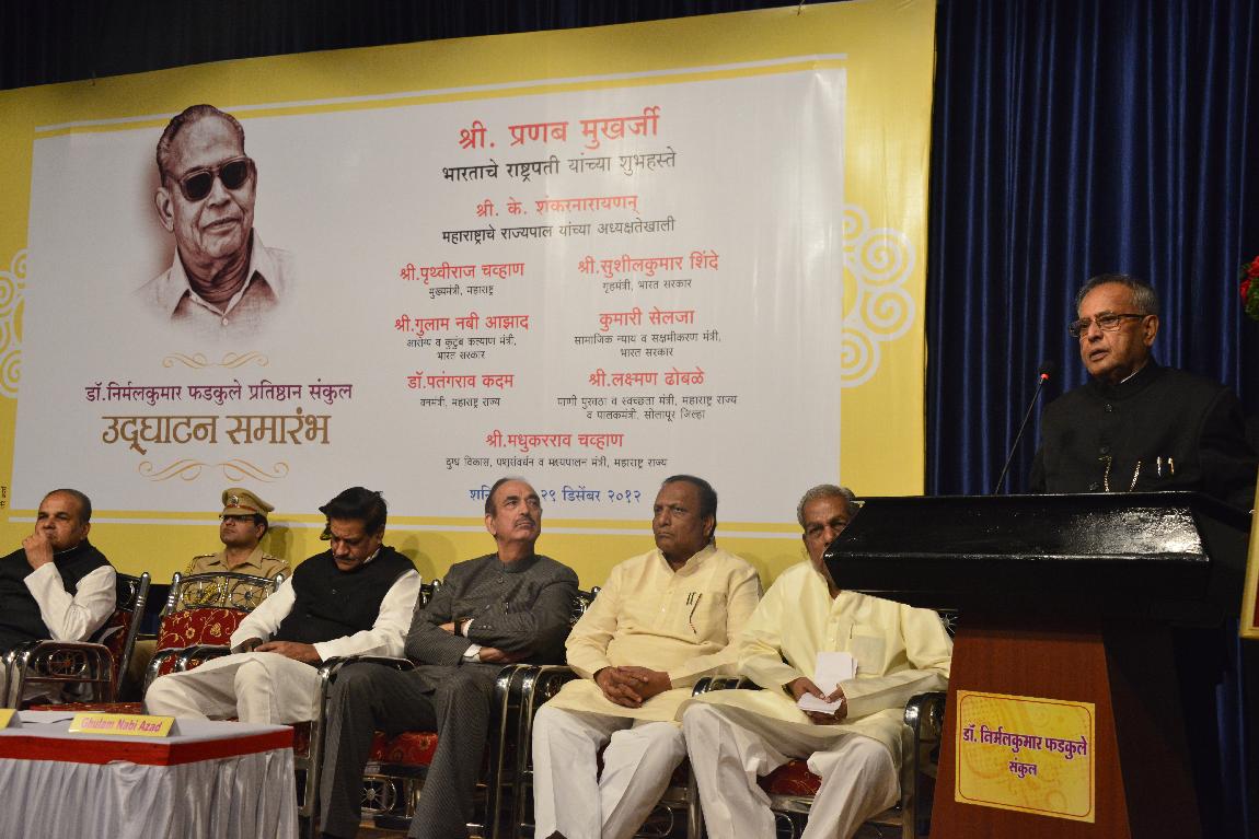 | Caption: | The President of India, Shri Pranab Mukherjee Inaugurating Nirmal Kumar Phadkule Auditorium on Dec 29, 2012 |
