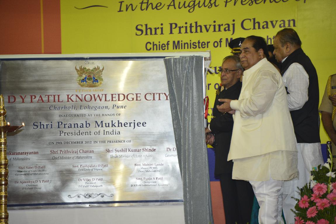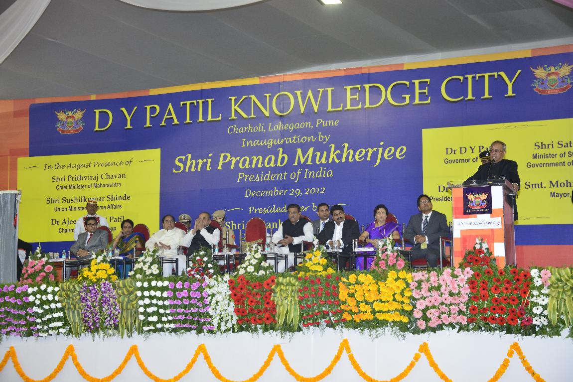 | Caption: | The President of India, Shri Pranab Mukherjee Inaugurating DY Patil Knowledge City, Charoli on Dec 29, 2012 |