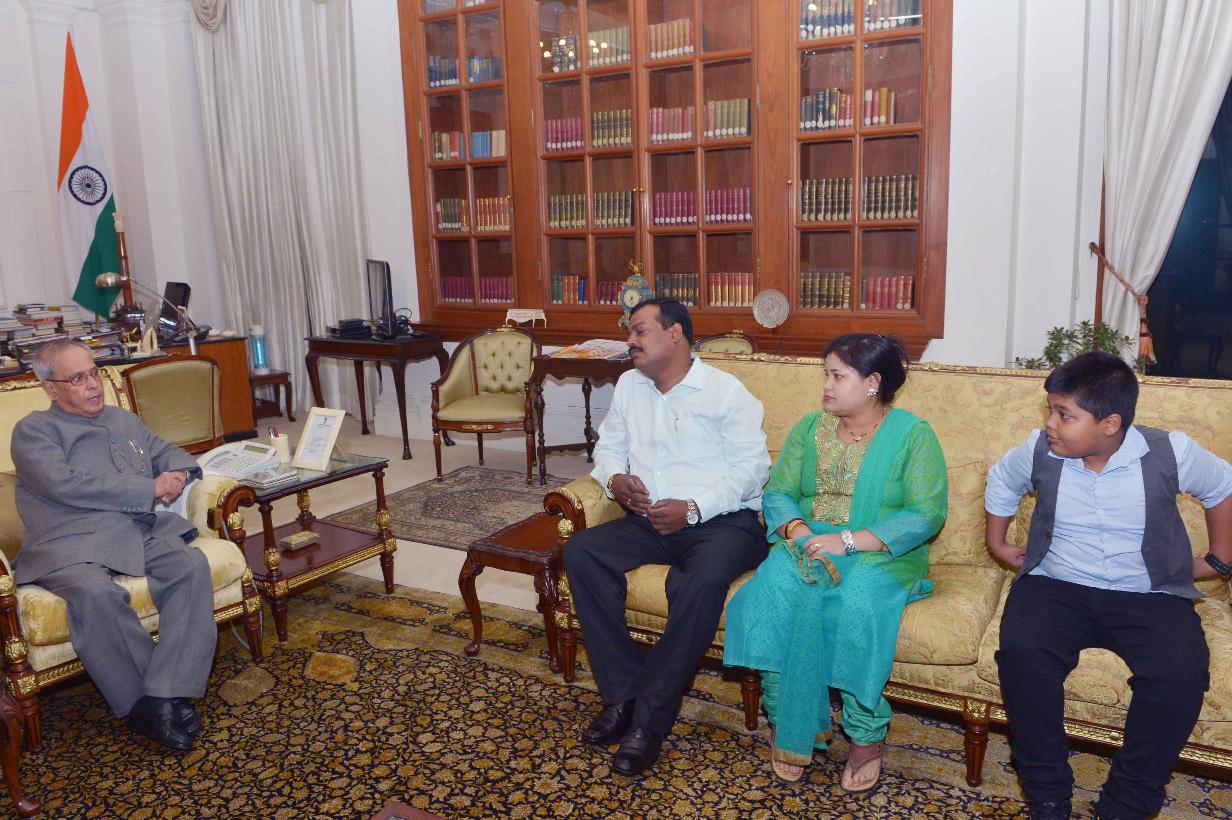 | Caption: | The President of India, Shri Pranab Mukherjee meeting with Smt. Anindita Mukherjee, Shri Diptiman Mukherjee and Shri Dipanshu Mukherjee from Secunderabad, at Rashtrapati Bhavan, in New Delhi on October 16, 2015. |