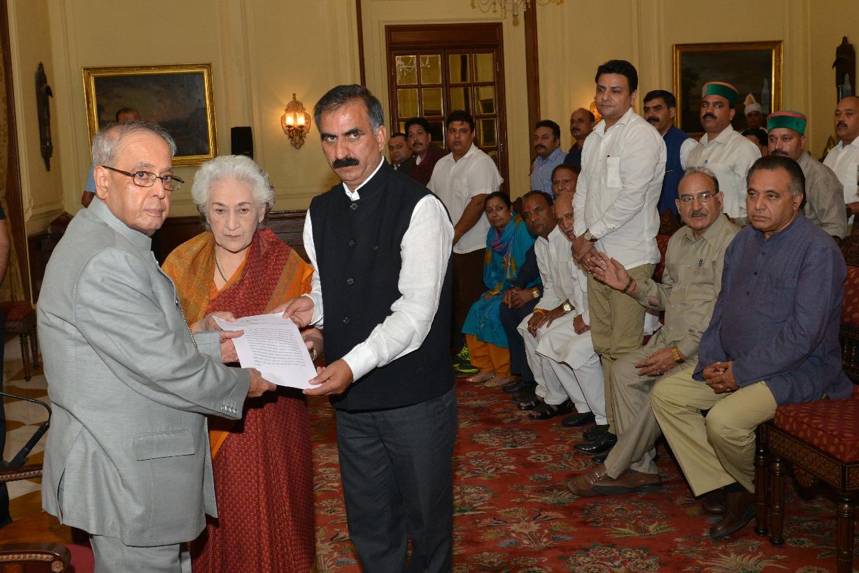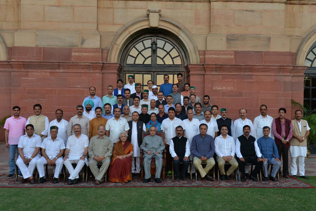 | Caption: | The President of India, Shri Pranab Mukherjee meeting with the delegation of Congress Legislative Party and Himachal Pradesh Congress Committee led by Smt. Vidya Stokes, Minister for Irrigation & Public Health, Himachal Pradesh and Shri Sukhwinder Singh Sukhu, President, Himachal Pradesh Congress Committee, at Rashtrapati Bhavan, in New Delhi on October 01, 2015. |